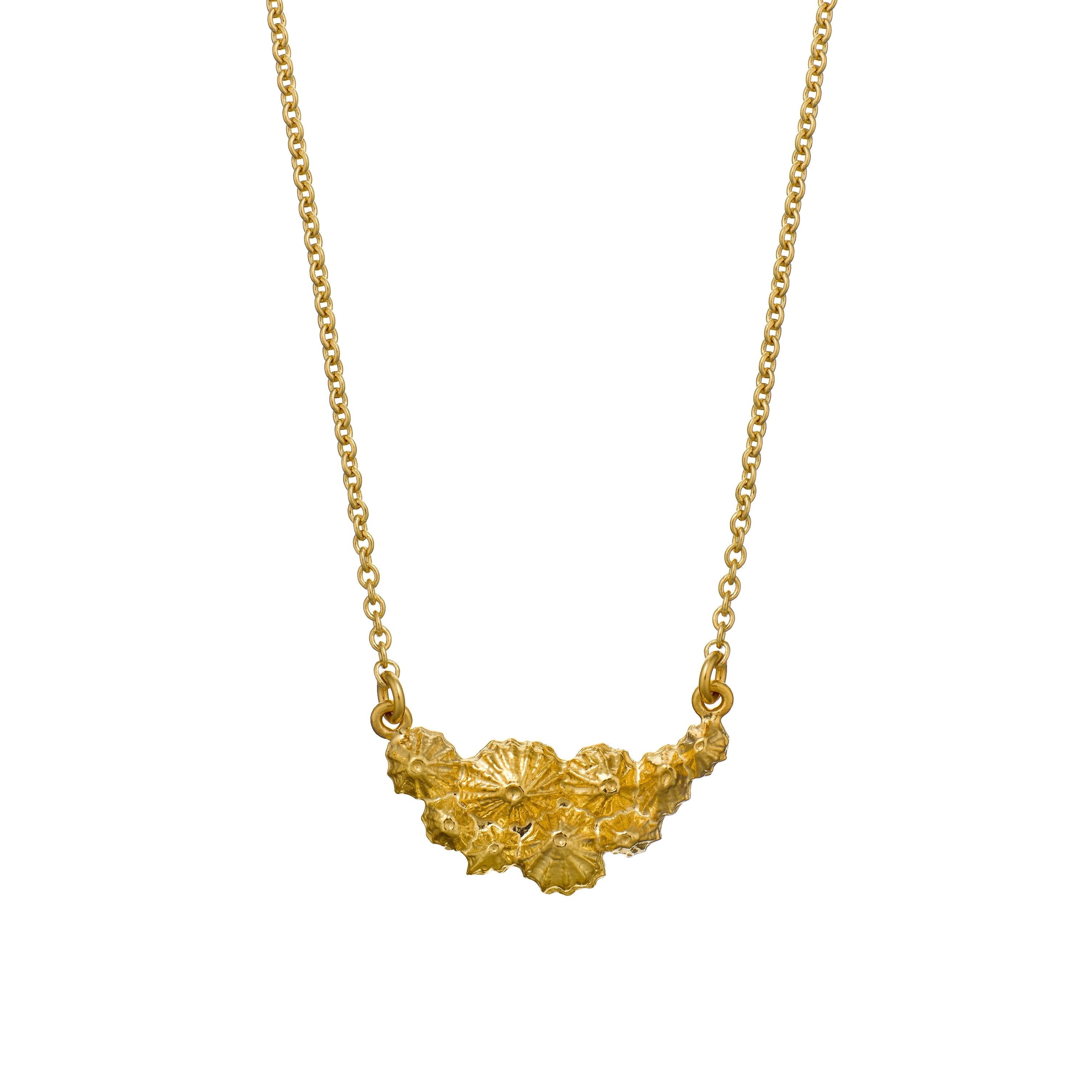 As Alex's journey along the water’s edge takes him closer to the sea, he can’t help but take a peek into the rockpools, formed after the tide comes in. This inline necklace consists of a cluster of limpets, purposely imperfect as you would find in nature.