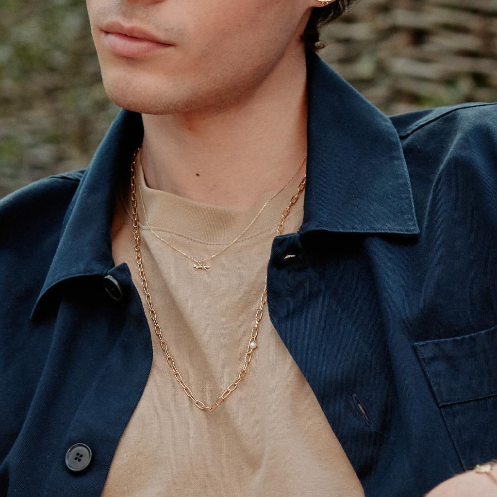 A.M. Pea Large Link Necklace with Single Pearl Gold