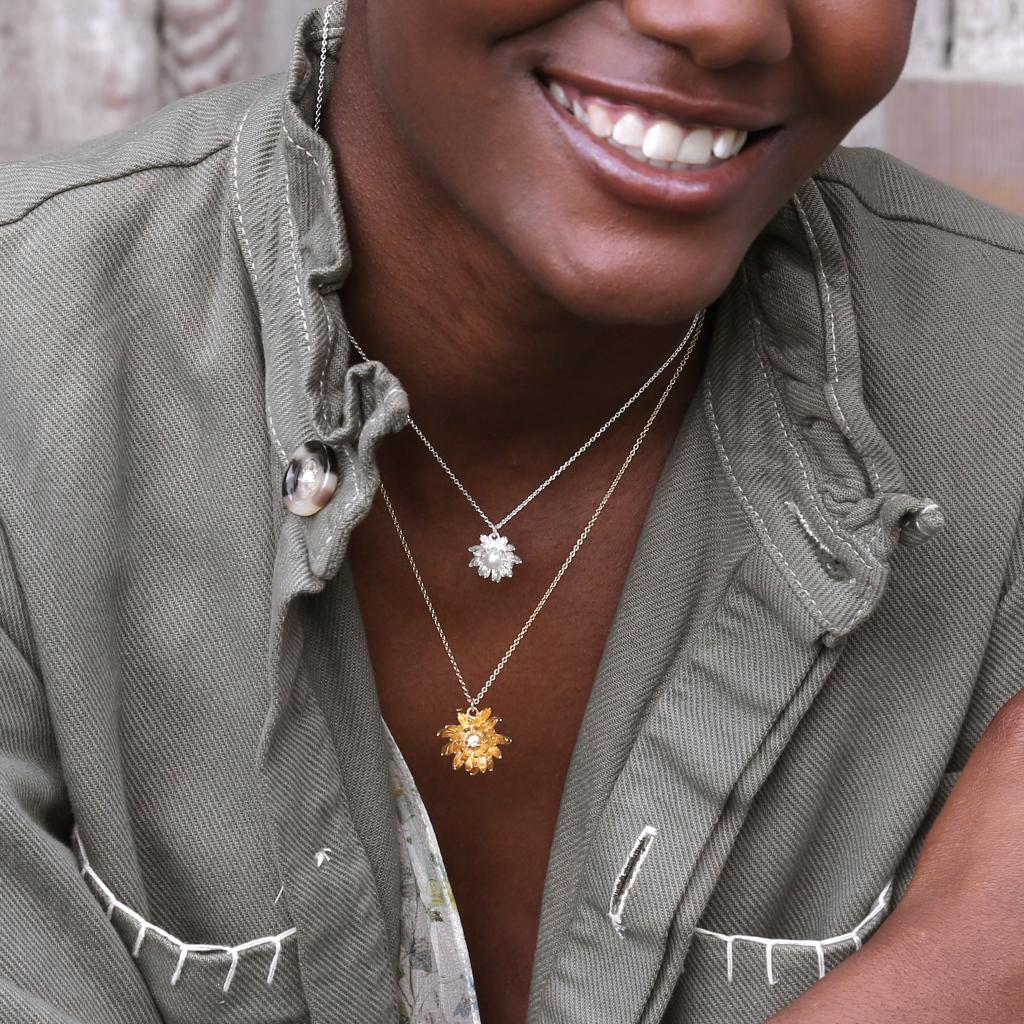 The blooming Chrystanthenum pendant necklace has been created from over 50 individual silver petals!