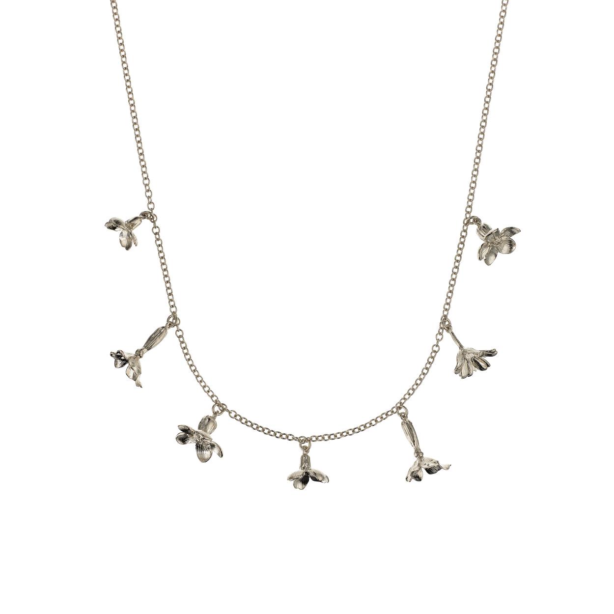 A sure sign that spring has arrived, these meadow flowers are tumbling into bloom. This charm necklace consists of seven flowers, purposely ruffled and imperfect as you would find in nature.