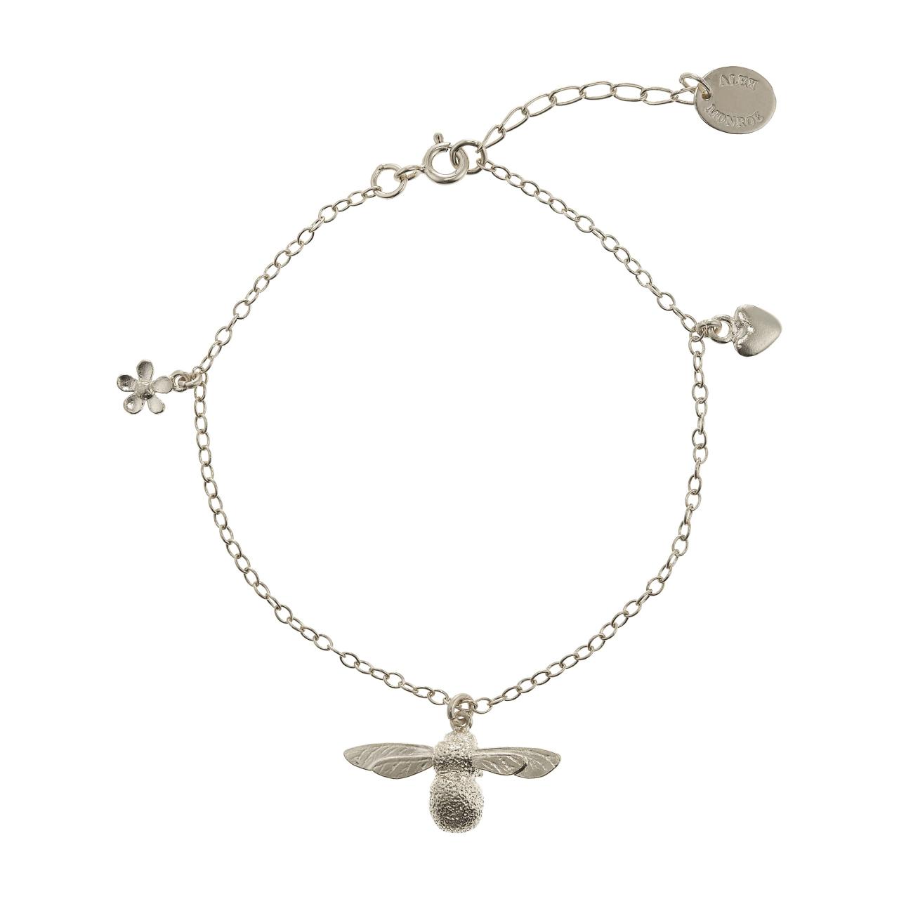 The beloved Baby Bee has flown his way onto a charming bracelet, accompanied by delicate heart and flower charms.