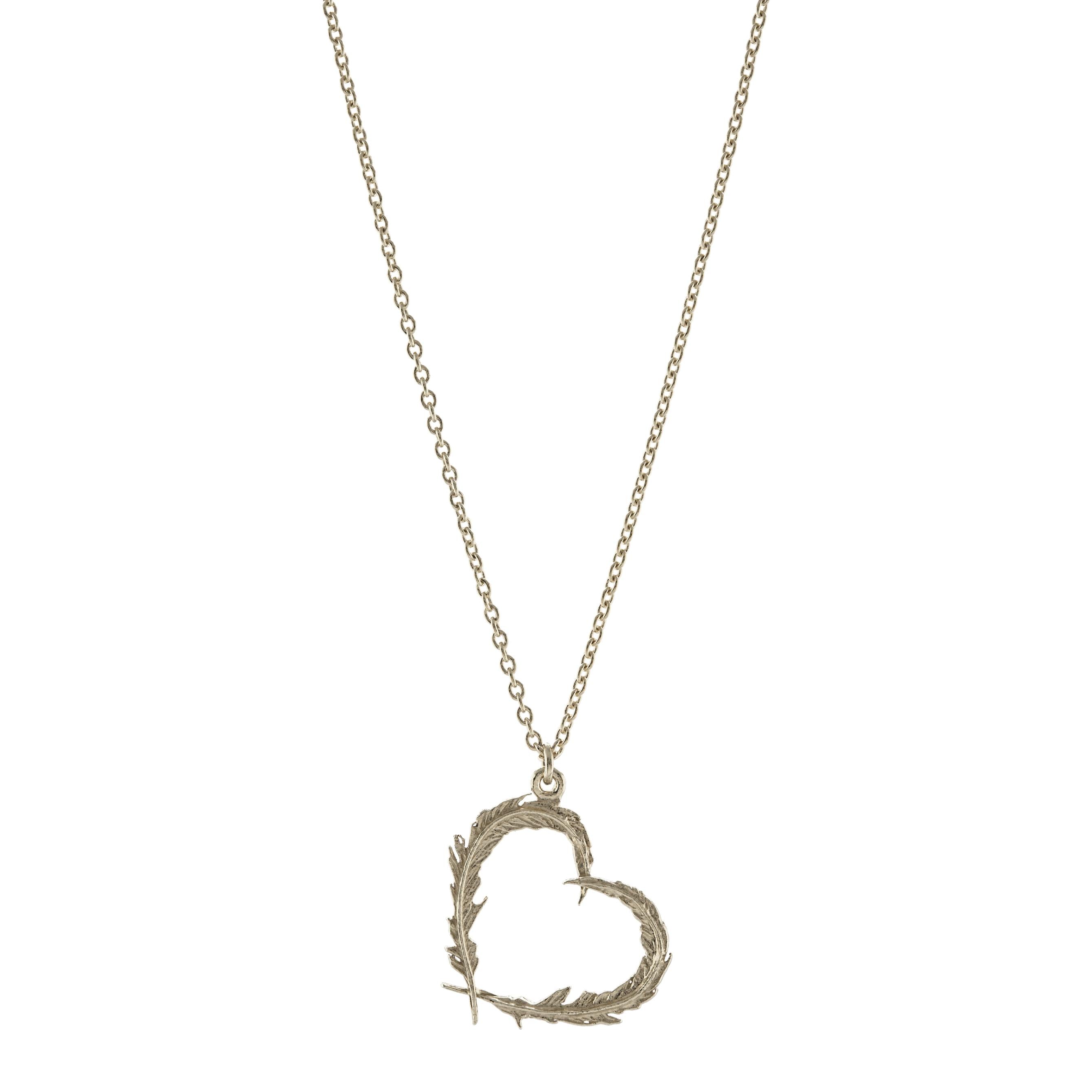 A.M. Delicate Feather Heart Necklace Silver
