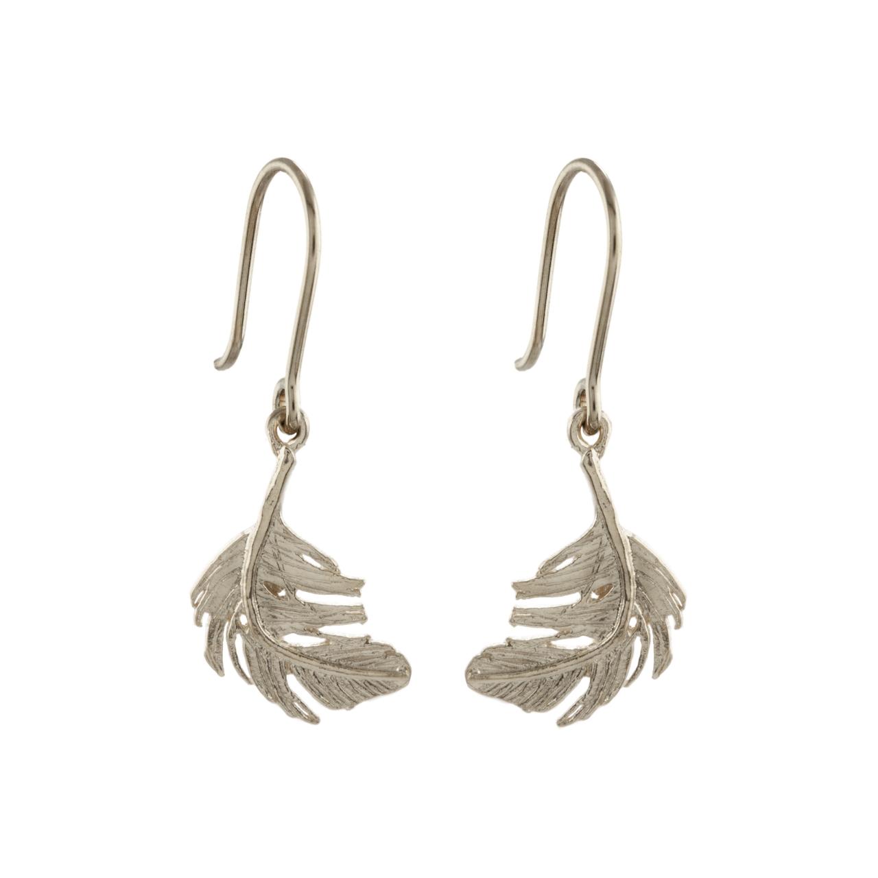 A pair of delicate feathers, intricately handcrafted from sterling silver, float beneath the lobes in these delicate hook earrings!
