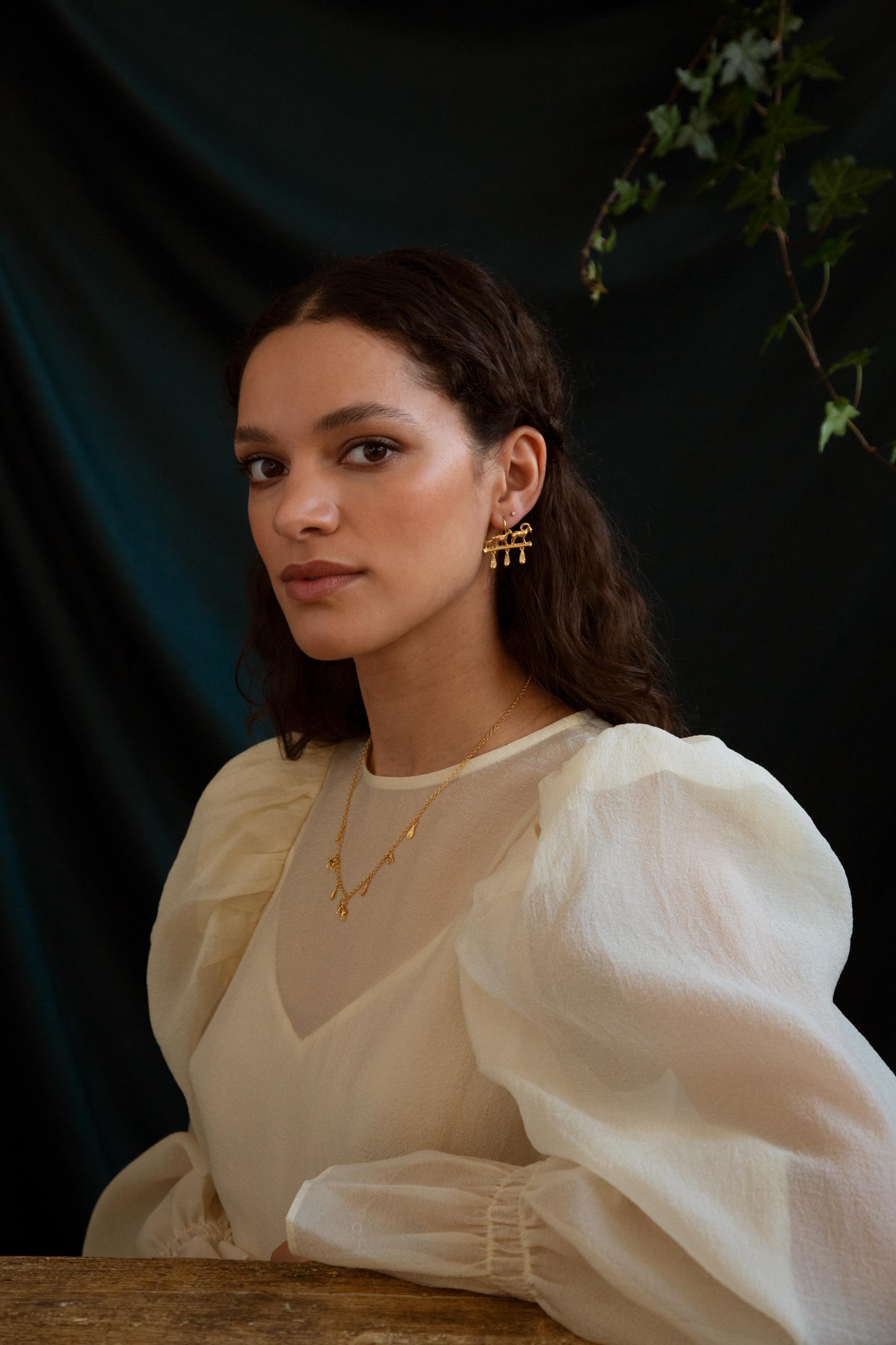A.M. Mountain Goat Family Necklace with Ornate Drops Gold