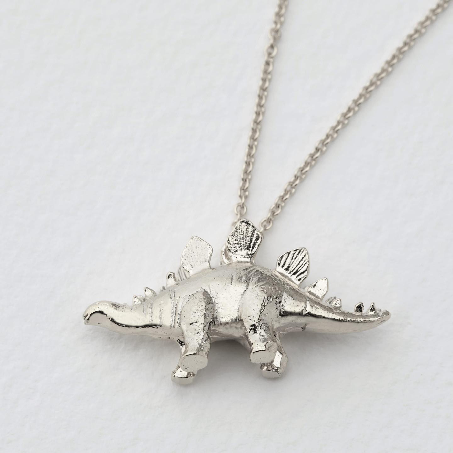 A peaceful vegetarian with an iconic spiky silhouette, Stegosaurus was the size of a double decker bus! This necklace celebrates this legendary creature in miniature.