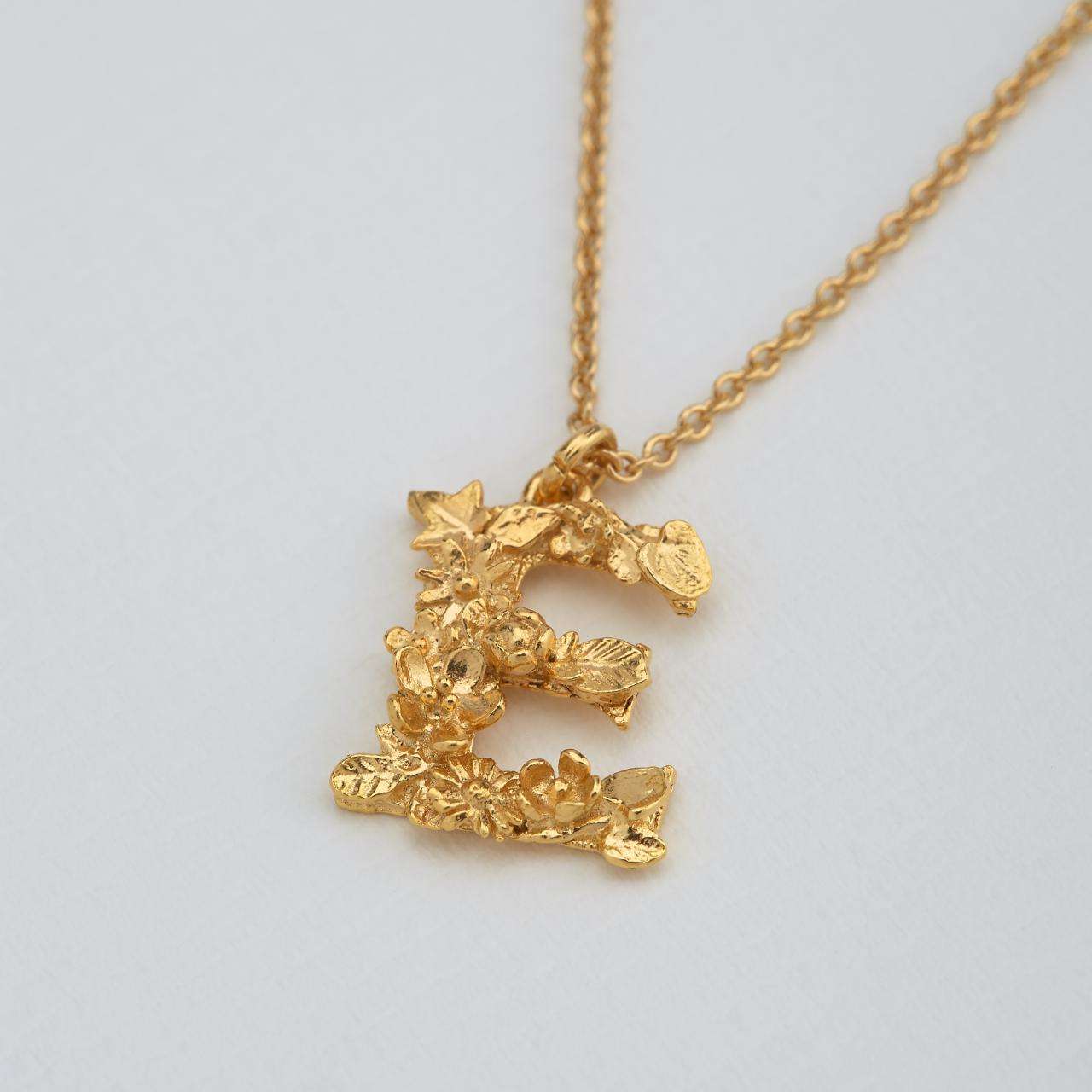 A.M. Floral Alphabet E Necklace Gold