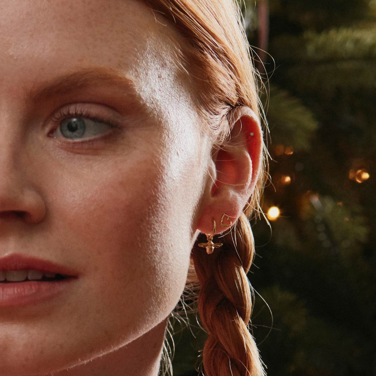 A.M. Teeny Tiny Single Huggie Hoop Earring with Bee 18ct Solid Gold
