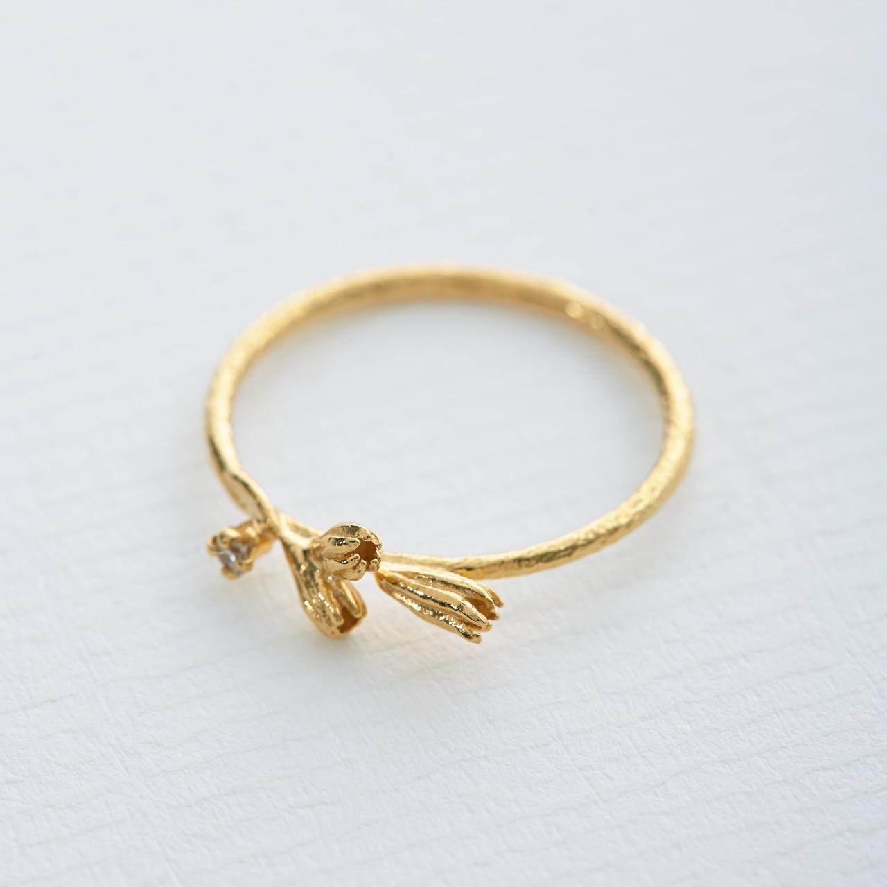 A.M. Seed Pod & Champagne Diamond Ring Gold