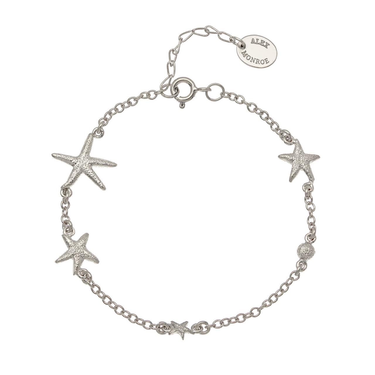 A galaxy of textured starfish decorate this elegant in-line charm bracelet.