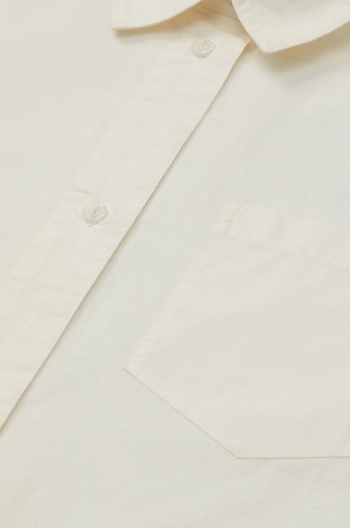 The Edgar shirt is an oversize menswear inspired shirt crafted from organic cotton poplin. The cool oversized fit serves that same feeling as the shirt we tend to borrow from his side of the closet, or the classic broad-shouldered coat found in a chic vintage shop. The light cream colour of this shirt adds a softness to it which enhances its ability to move seamlessly from workwear to weekend attire.