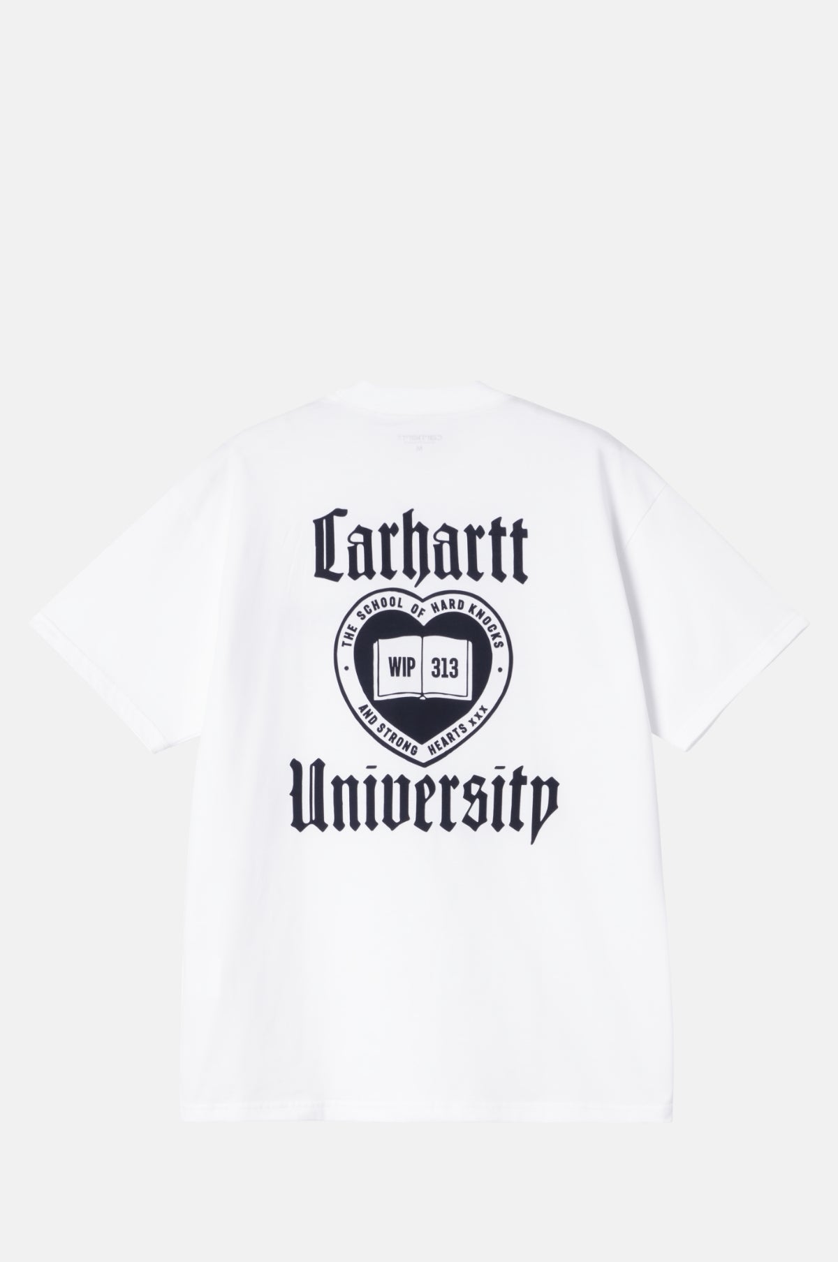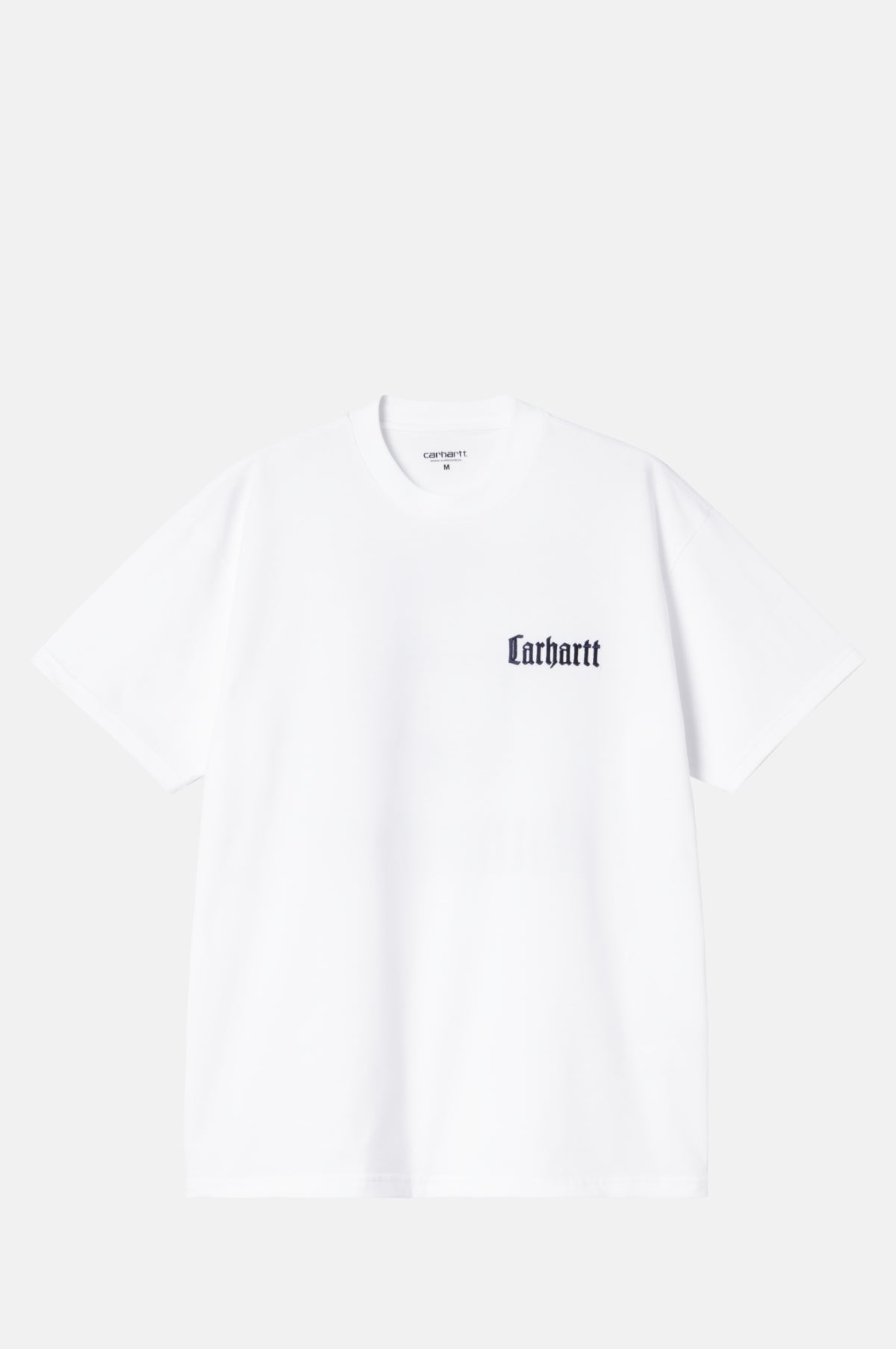 This Carhartt WIP tee is the definitive choice for easy, everyday style. Crafted from a lightweight 100% organic cotton jersey, this men’s short-sleeve T-shirt offers a contemporary, loose fit with a comfortable drape. It features subtle embroidery on the chest, while the primary design element, a bold graphic print, adorns the back. Finished in the appealing White colourway, this is the perfect premium lightweight basic for those searching for a casual top with character.