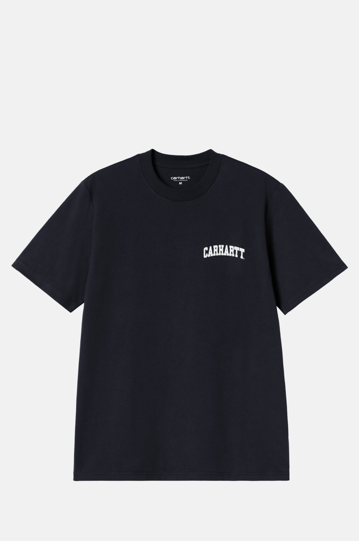 Some basics are simply better than others. This exemplary men's tee comes from the premium Carhartt WIP line, ensuring both impeccable fit and real longevity. Crafted from a heavyweight 230g/m² single jersey, the cotton is 100% organic, offering a sustainability point as satisfying as its relaxed drape. Finished in the sophisticated 'Deep Night' colourway (our favourite shade of dark blue), the shirt features the brand’s classic white University script, making this high-quality staple the perfect foundation for any discerning casual wardrobe.