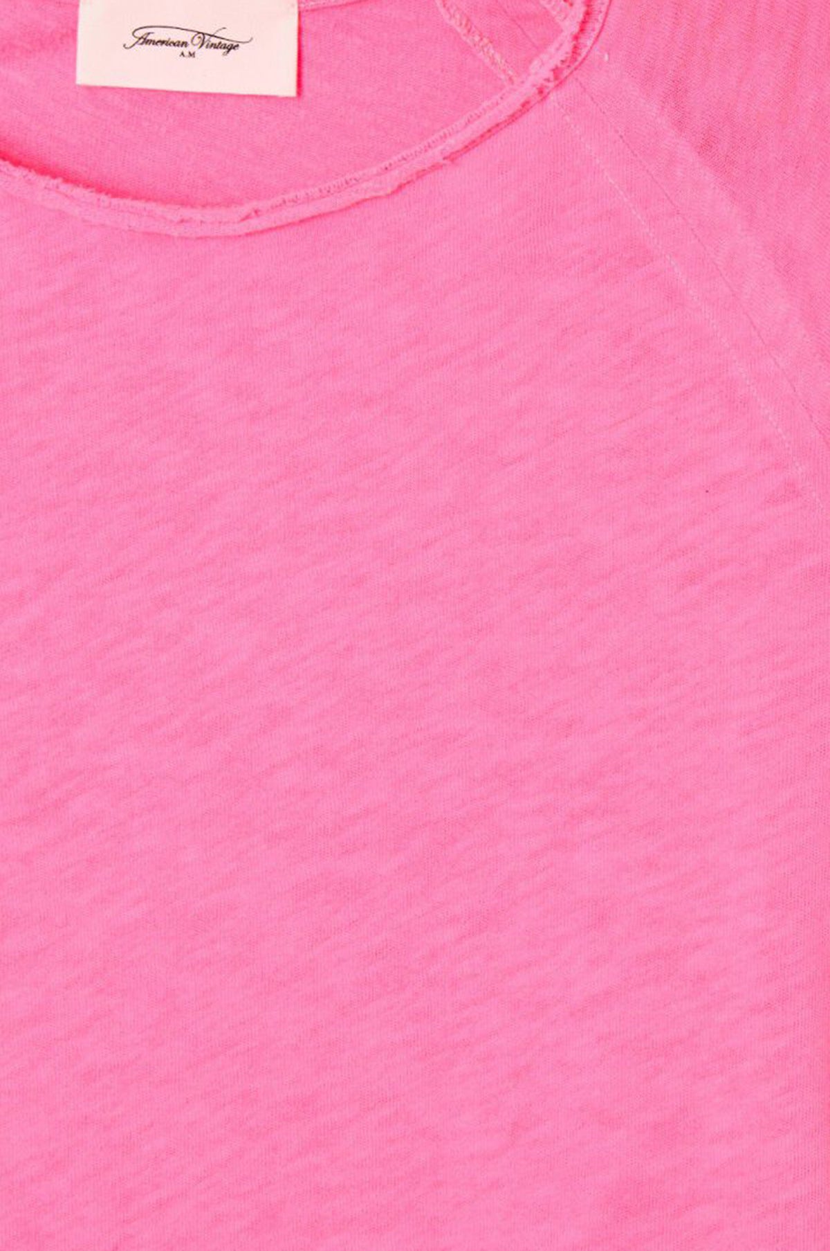 The Sonoma is another American Vintage classic. Slightly thicker than a tee, but less so than a sweat, this is the perfect between season layer that will become invaluable. It has a flattering boat neckline and long, raglan set sleeves. The pure cotton fabric is very slightly textured and the edge left raw beyond the hems for a casual look. This is the Pink Acid Fluo colour which is a vibrant neon pink.