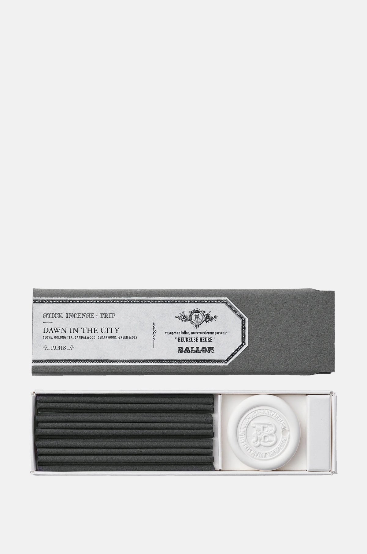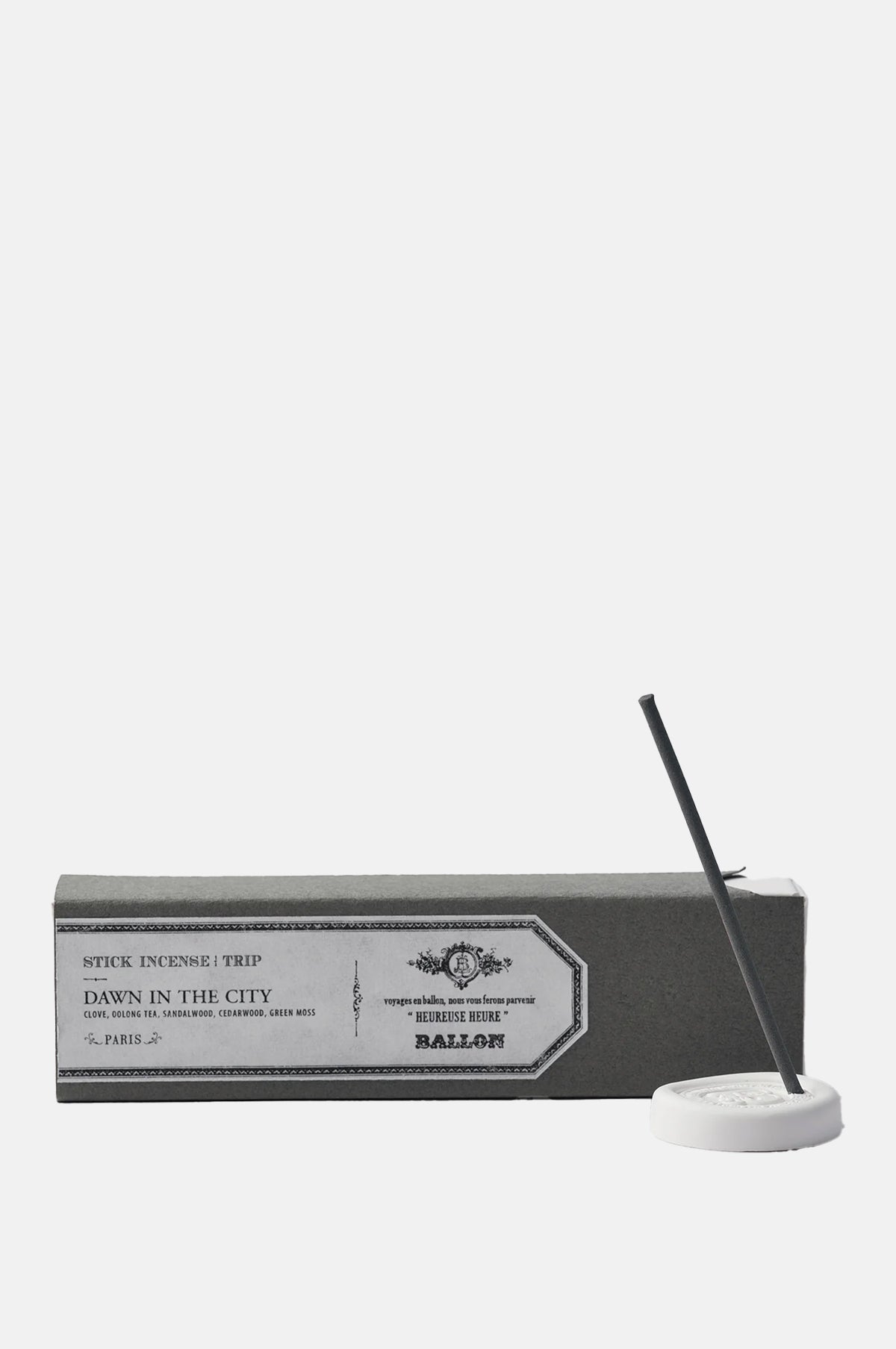 Awaken to the quiet elegance of a Parisian morning with Dawn in the City, a refined incense set by Japanese brand Ballon. Part of a collection inspired by four iconic cities, this stylish box holds 20 incense sticks and a porcelain stand, designed with graceful simplicity. The fragrance weaves warm, earthy notes of clove, oolong tea, sandalwood, cedarwood, and green moss — a sophisticated, grounding blend that evokes misty streets, historic boulevards, and serene city gardens at first light. A subtle, luxurious scent to bring calm, refinement, and mindful moments into your everyday routine.