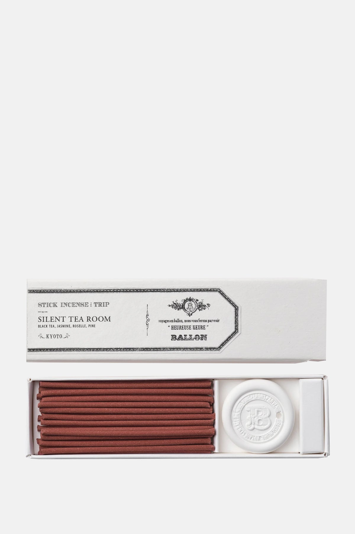 Step into the serene rhythm of a Kyoto tea garden with Silent Tea Room, an enchanting incense set by Japanese brand Ballon. Part of a collection inspired by four iconic cities, this elegant box contains 20 incense sticks and a porcelain stand, crafted with understated refinement. The fragrance unfolds with notes of black tea, jasmine, roselle, and pine — a delicate, meditative blend that evokes quiet reflection amidst lush gardens and ancient temples. A sophisticated, calming scent to infuse your daily rituals with balance, tranquility, and understated luxury.