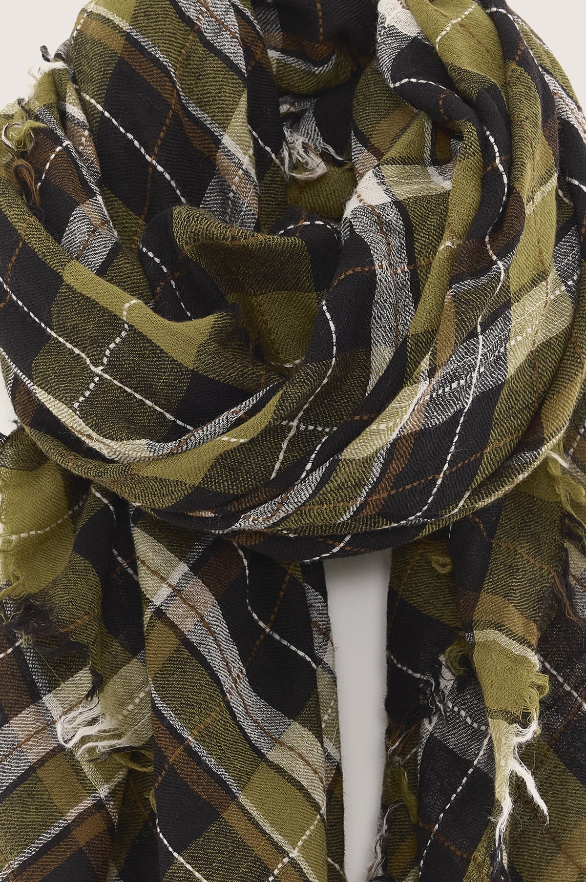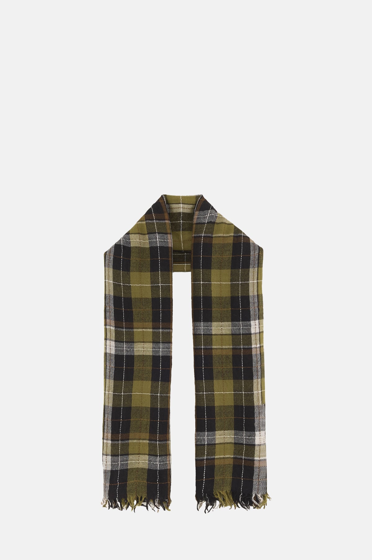 - Checked wool scarf with frayed edges