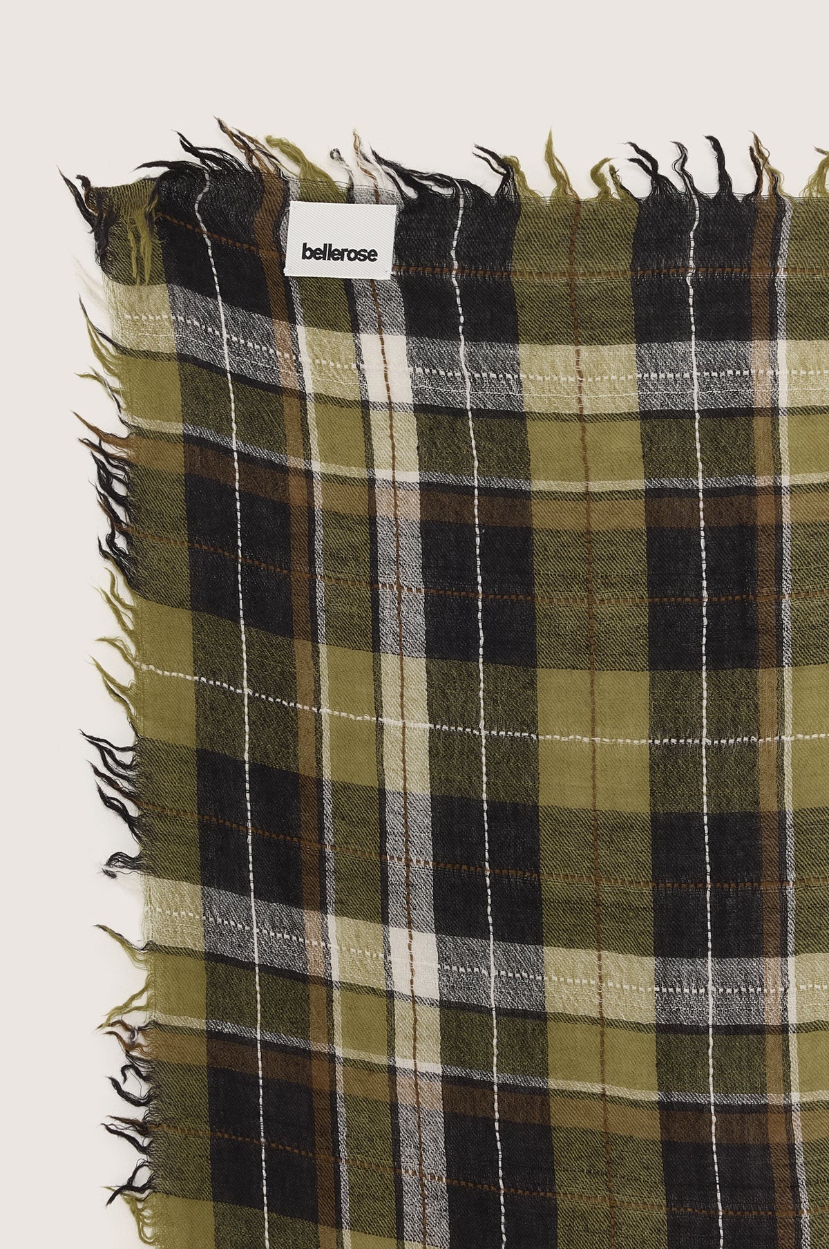 In a timeless olive green check this wool scarf from Bellerose is the perfect accessory for keeping the chill away in cold weather. In a neutral colour way it will pair seamlessly with any outfit.