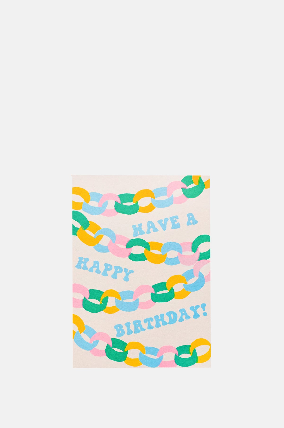 Put up the party streamers and celebrate a birthday in style with this jolly paper chain design card.