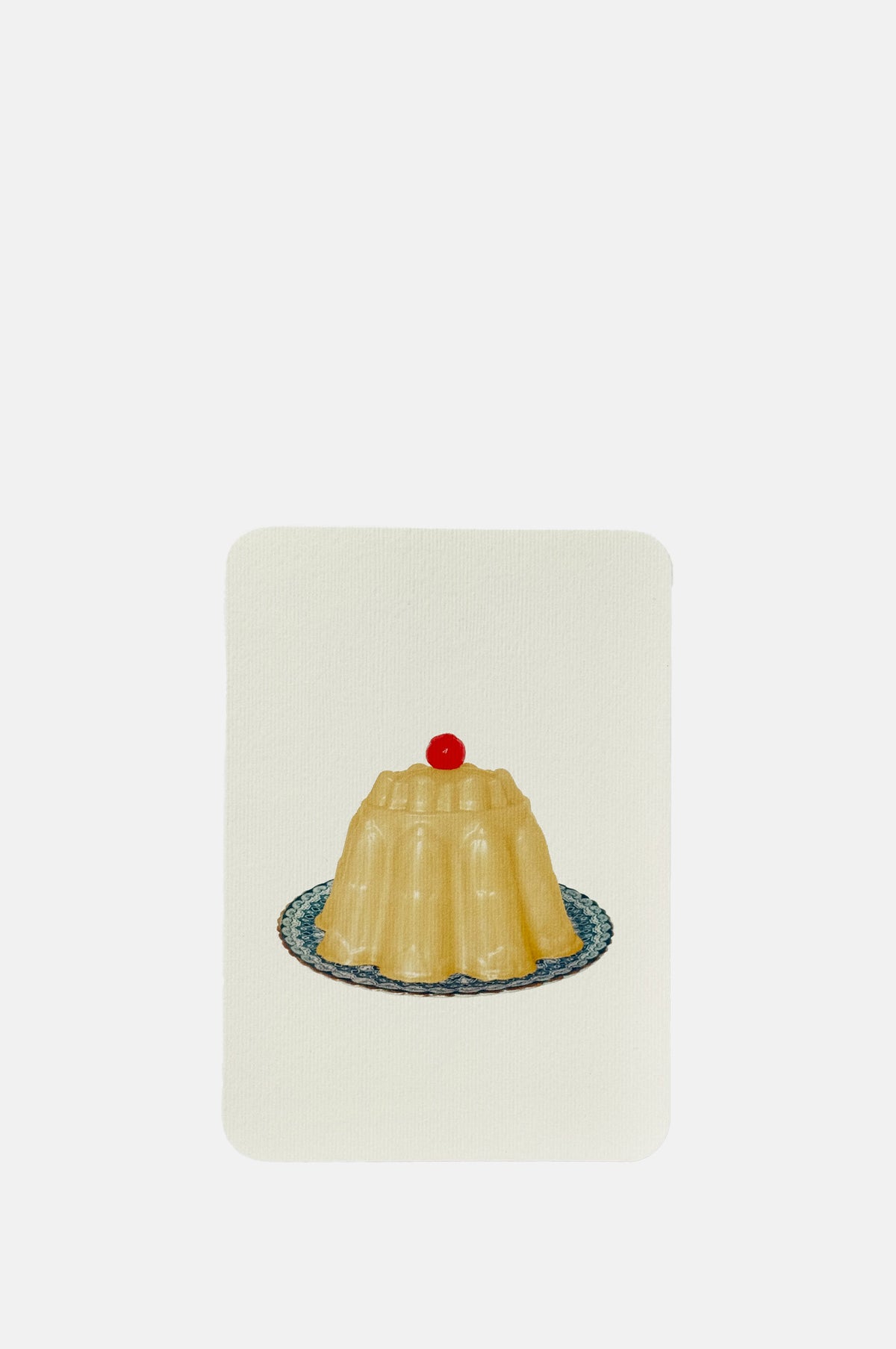 There really is very little in life more entertaining than a blancmange! And even better if you don't actually have to eat it! This charming greeting card features exclusive artwork by Alexandra Simms of a jolly custard yellow blancmange on a plate with a glacé cherry on top. Perfect for many occasions!