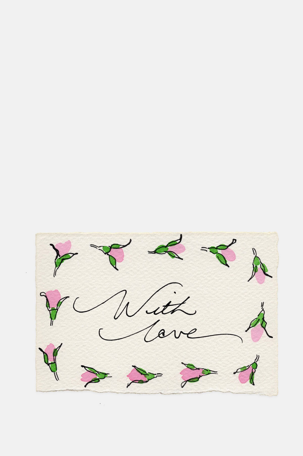 This beautiful and elegant card sets the perfect romantic tone. Adorned with hand painted pink roses it simply and succinctly says "with love". What more could you need?