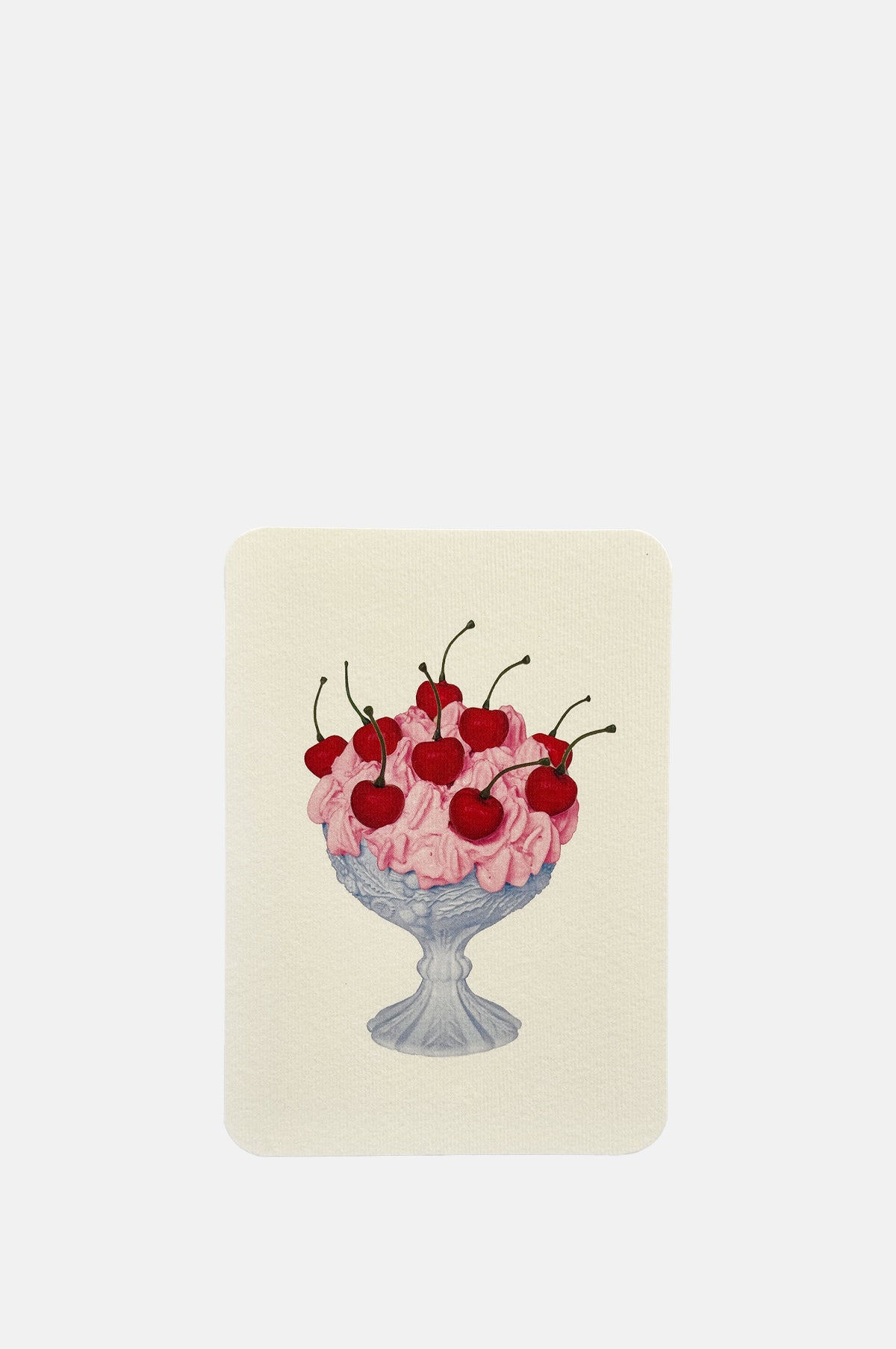 Printed and hand-finished in England using luxurious Italian-milled paper, this sweet greeting card features a photograph of Strawberry Chantilly Cream bedecked with cherries. Almost good enough to eat, this retro-inspired notecard is reminiscent of Victorian promenades on the seaside collecting shells, relaxing on the sand, and eating glassfuls of ice cream topped with Chantilly cream. A charming way to send a hand written note we've bought the whole set.