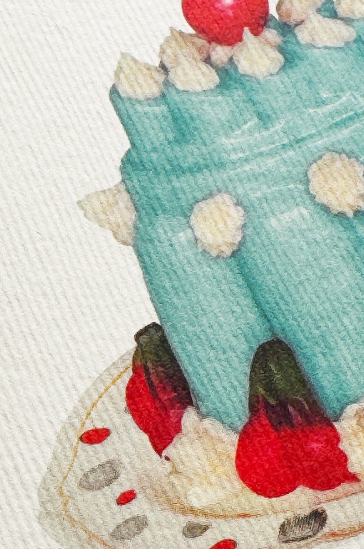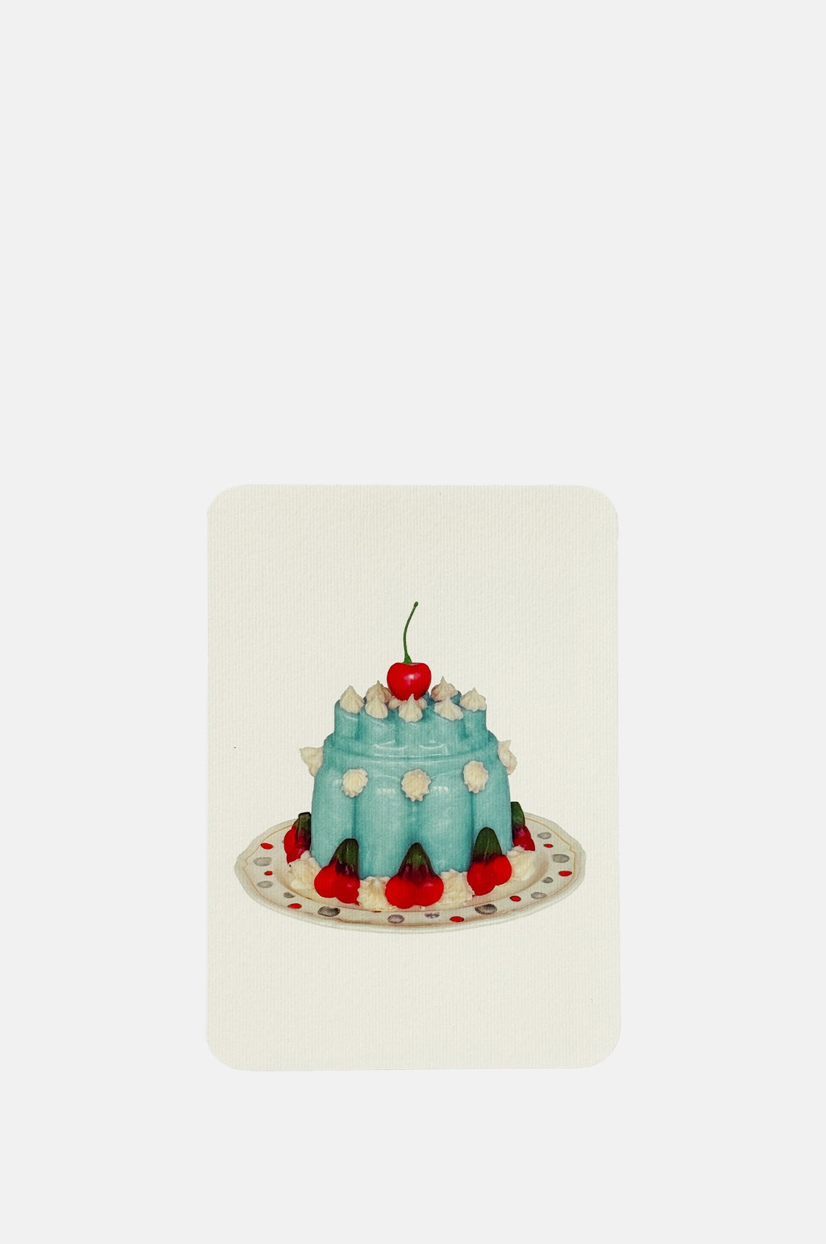 There really is very little in life more entertaining than a blancmange! And even better if you don't actually have to eat it! This charming greeting card features exclusive artwork by Alexandra Simms of a jolly green blancmange on a plate covered with cherries and flowers. Perfect for many occasions!
