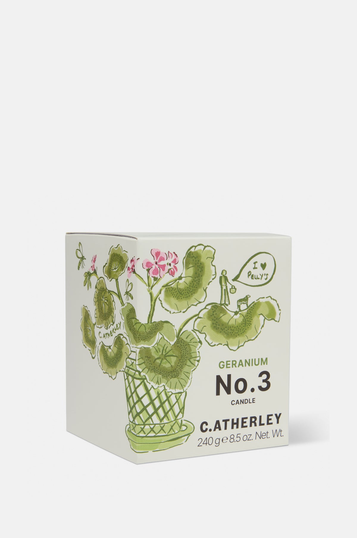 C. Atherley's scented candle will infuse your home with the uplifting scent of the Mabel Grey Geranium with its zesty citronella fragrance. It is ideal for kitchens and outdoor summer living with its citrus notes which help to ward bugs away.