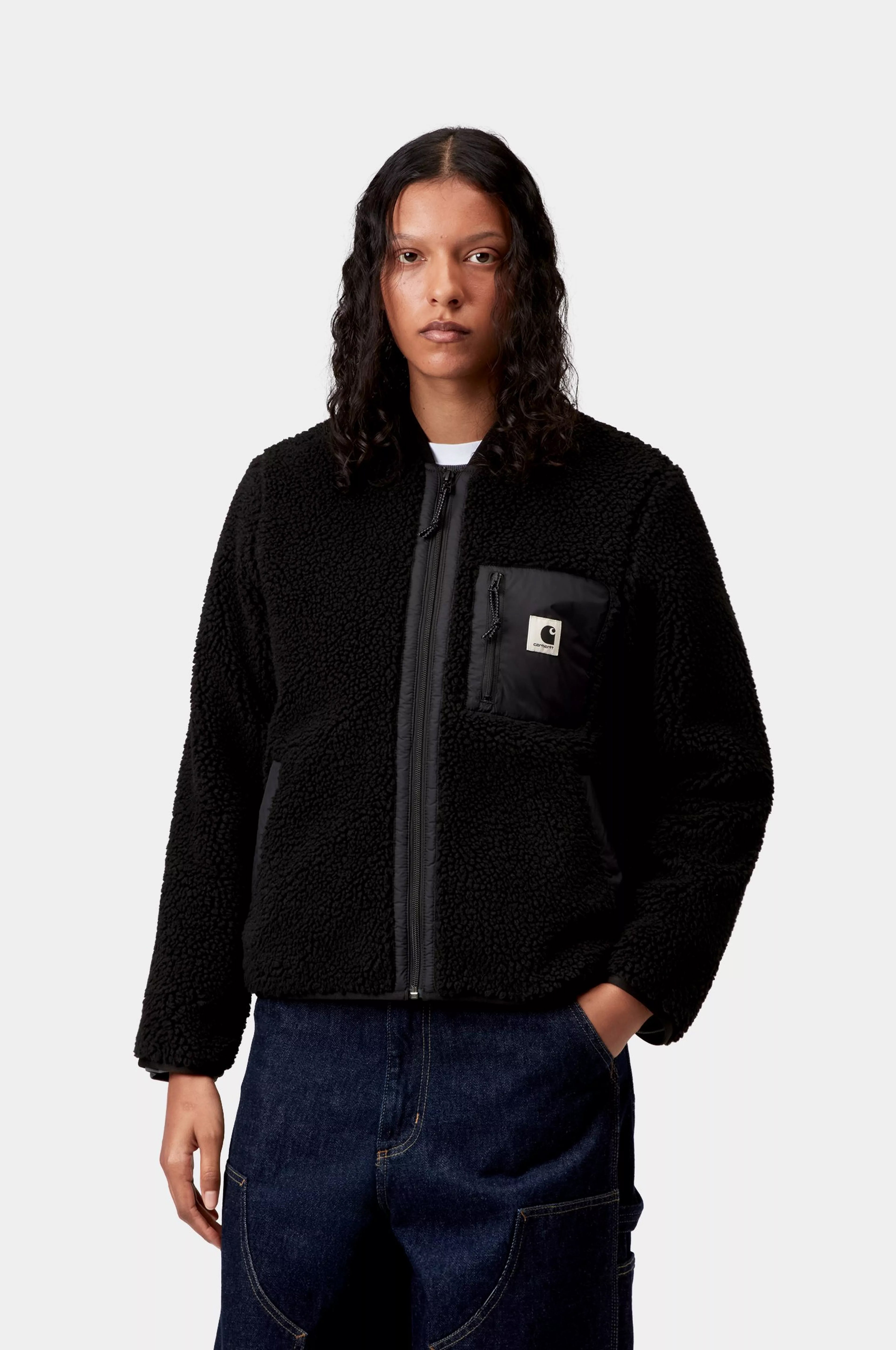 The Women's Janet Liner Jacket is a mid-weight style constructed from a dense polyester pile. This iteration of the Liner jacket features an allover black block colour. Inside, the garment is lined with nylon taffeta at the body and sleeves. It is detailed with a ribbed collar, contrasting nylon taffeta chest pocket and woven Square Label. A sporty number perfect for the changing seasons.