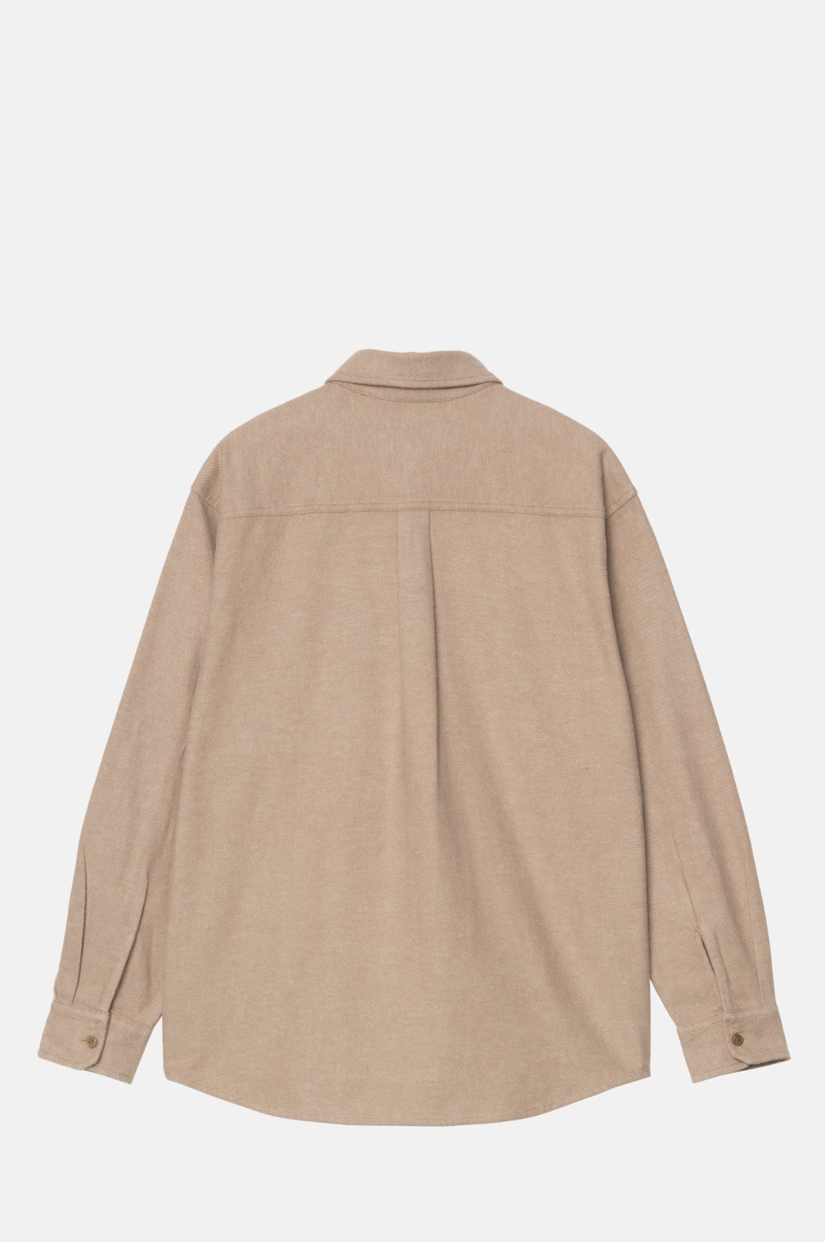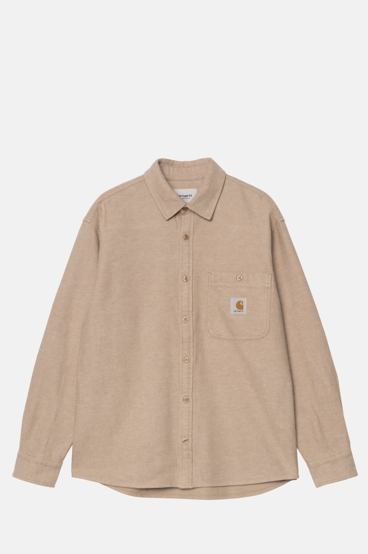 The L/S Edgar Shirt in Peanut/Wax from Carhartt WIP is made of heavyweight cotton flannel fabric and is unlined. The style is detailed with one chest pocket with the classic Carhartt woven Square Label on the left chest pocket.