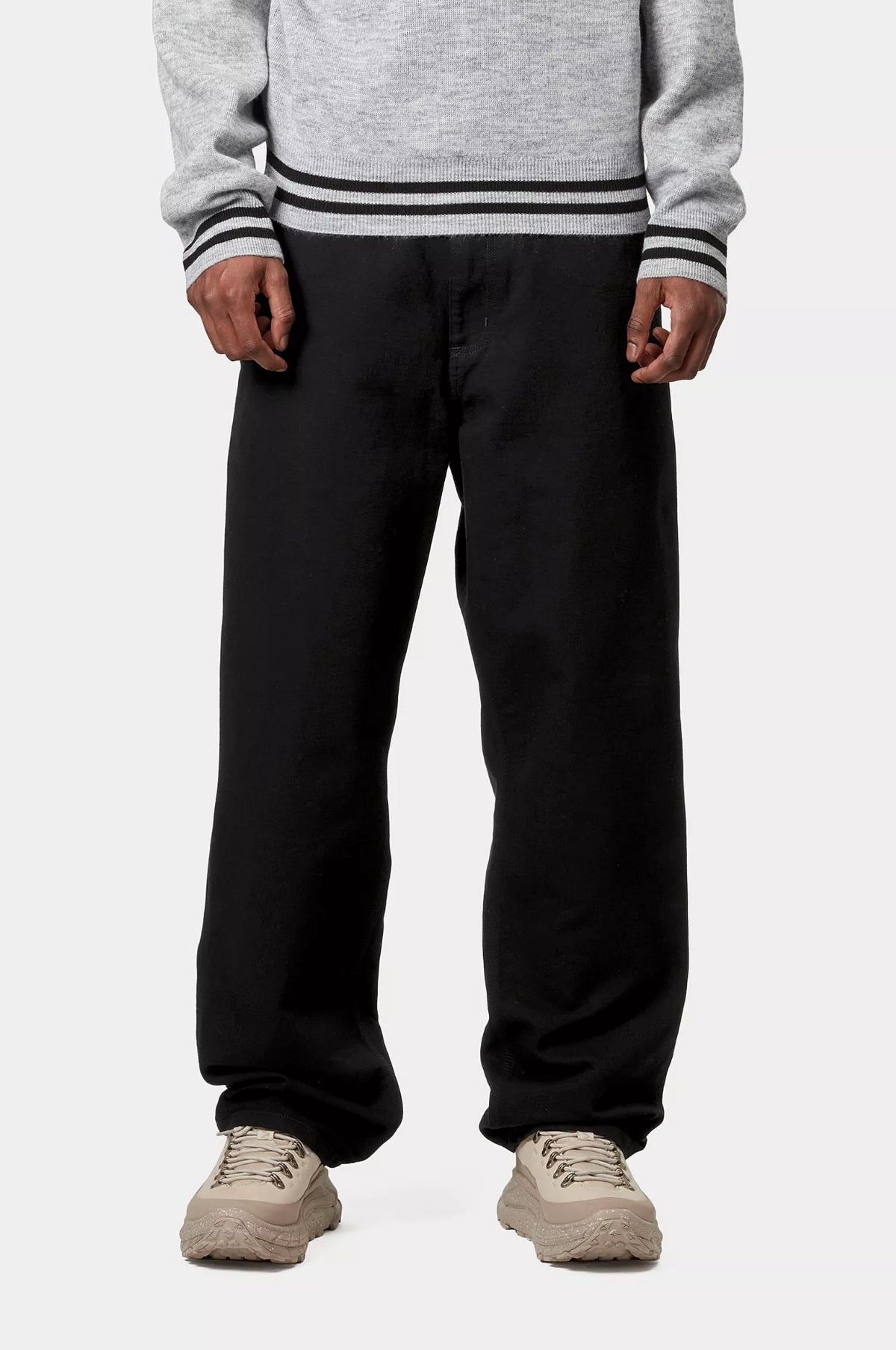 The Single Knee Pant in black from Carhartt WIP draws inspiration from classic work pant silhouettes, and is constructed in a robust 12oz Dearborn Canvas, which will slowly soften with wear over time. This garment has an oversized waist and is cut in a relaxed straight fit, bartack stitching at vital stress points make the pant more robust. Rivet details, tool pockets, and a hammer loop are further nods to the style's utilitarian influences.