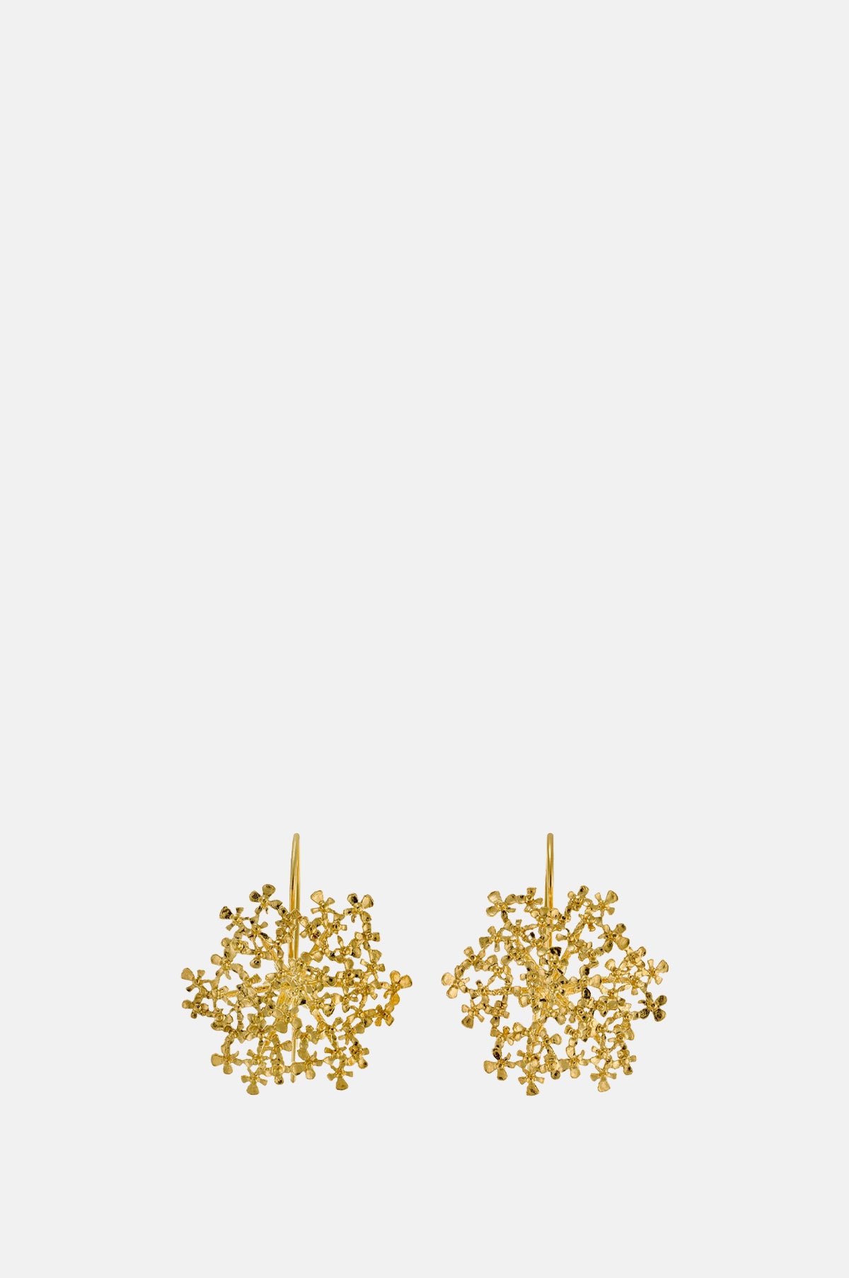 Found in British hedgerows and meadows throughout the spring and summer, Alex Monroe have recreated these delicate wildflowers into light and airy earrings. Made from gold plated silver they are lightweight while the curved hook allows them to sit close to the ear.