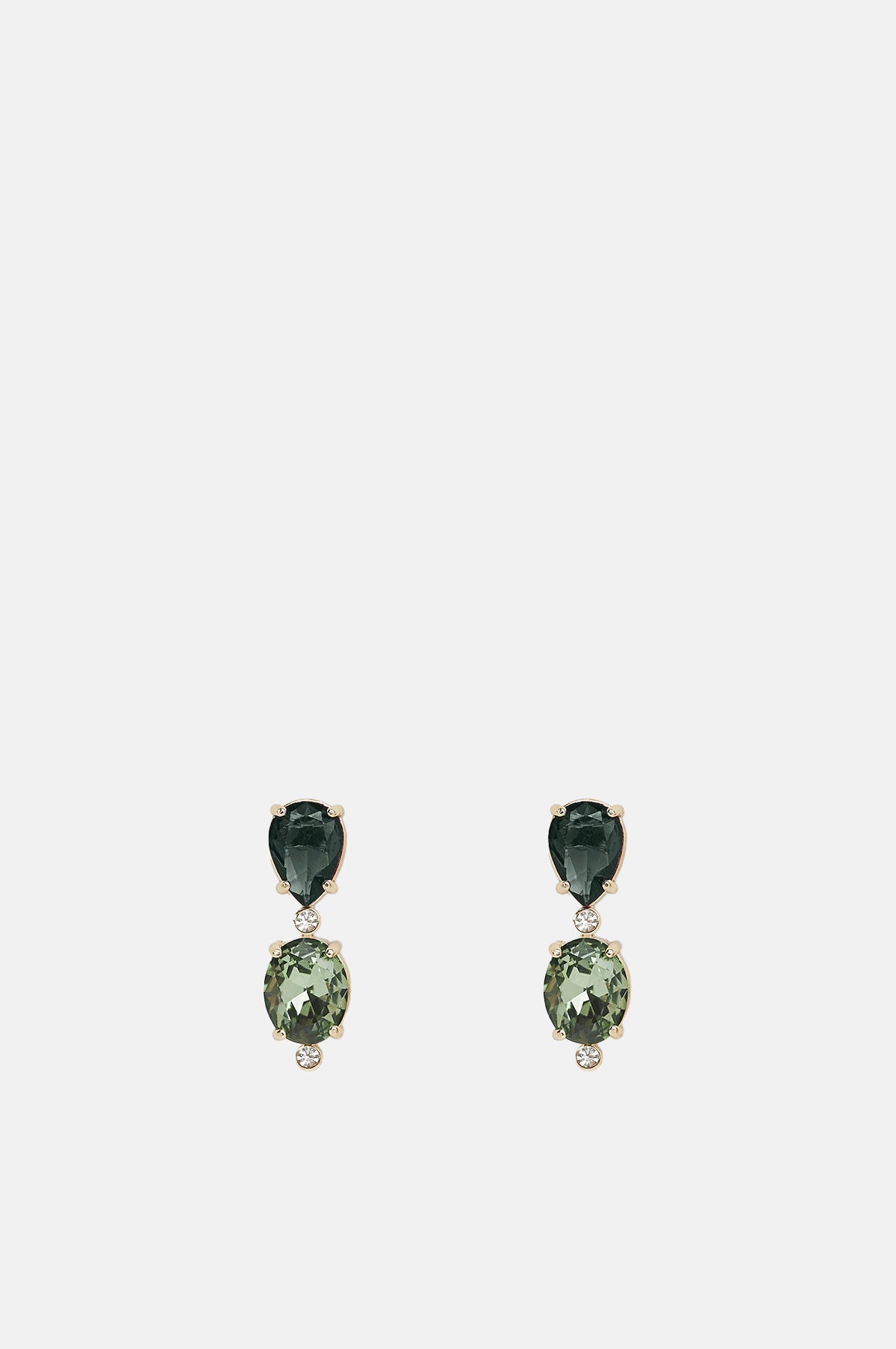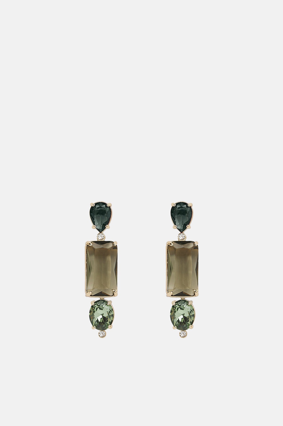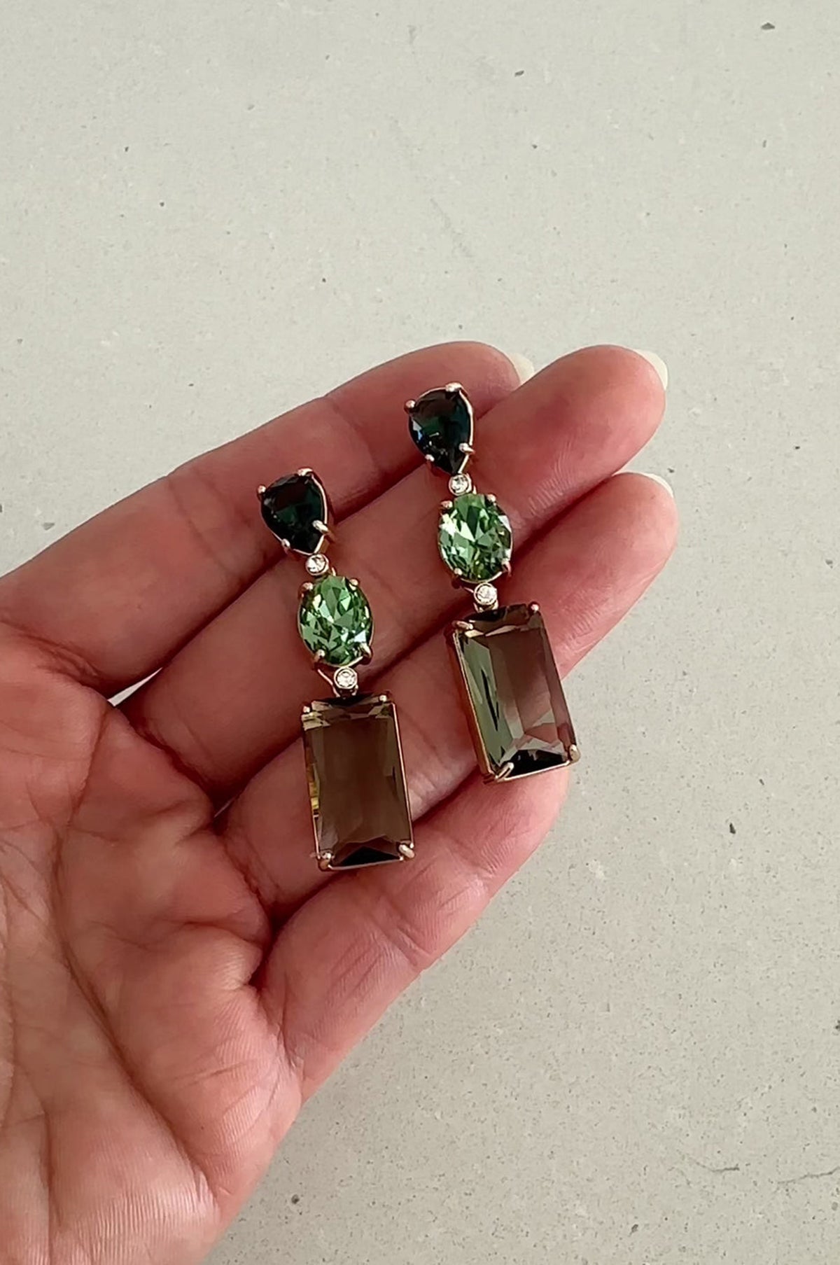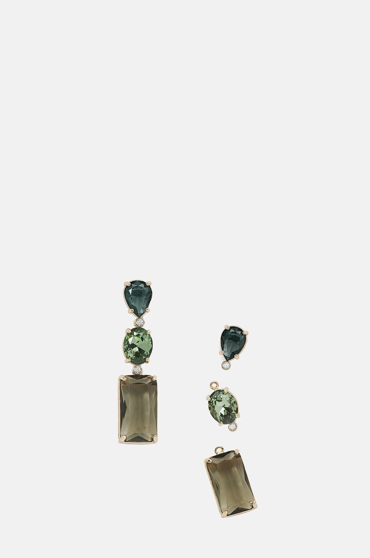 An ideal addition to evening wear, these convertible drop earrings will keep up with your last minute outfit dilemmas. Swappable gems in soft green hues allow you to create your own unique designs by simply removing them from the hook. The elegant glass cuts are set in 14K gold plating.