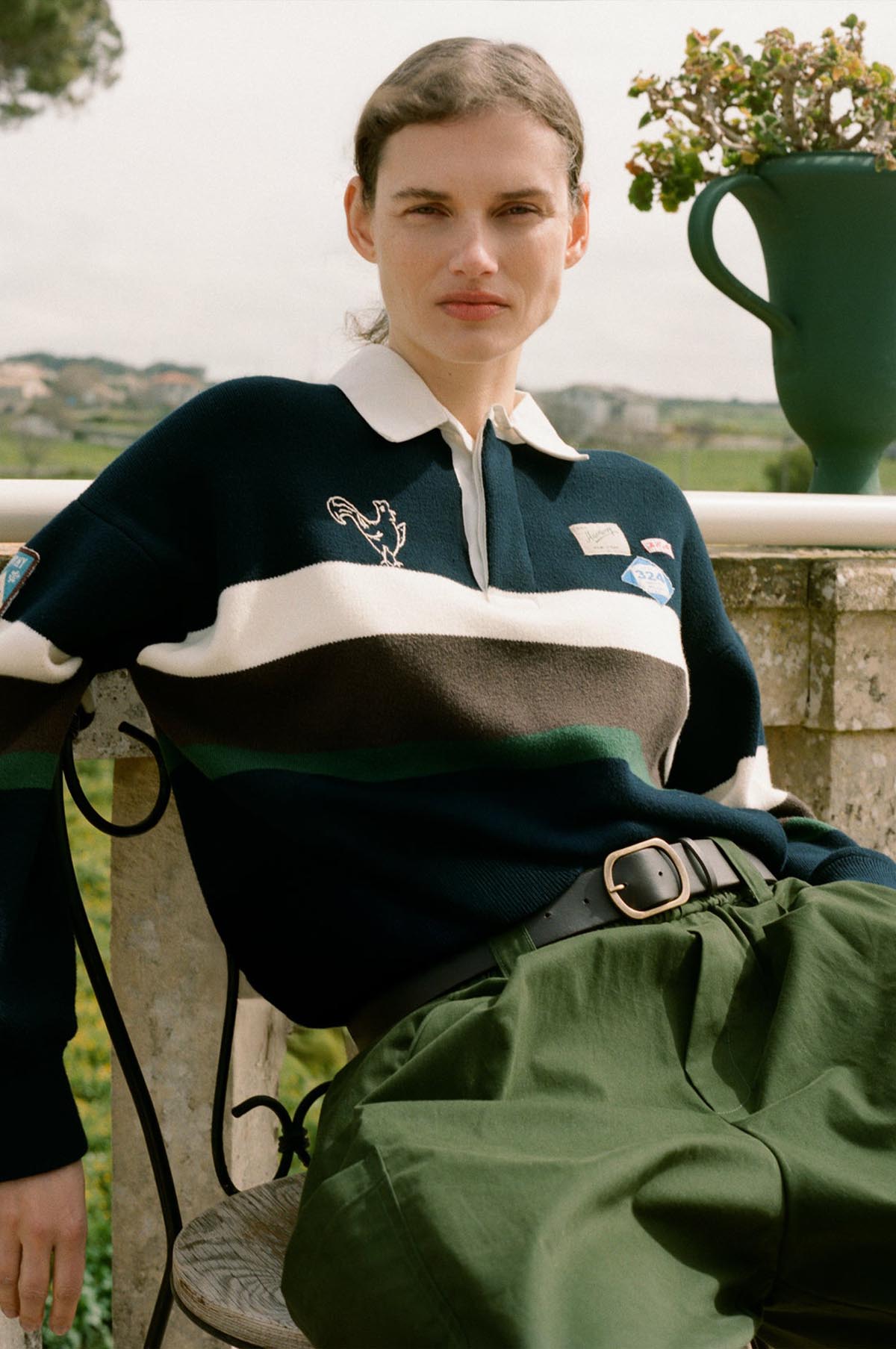 A collegiate classic, this knit rugby shirt from Sea, New York looks like it could've been pulled straight from an Old Rugbeians yearbook. Medium-weight with bold colour blocking, embroidered details, and custom 'Sea' labels, it's a fresh, feminine take on a timeless design - sure to give the Old Boys a run for their money.