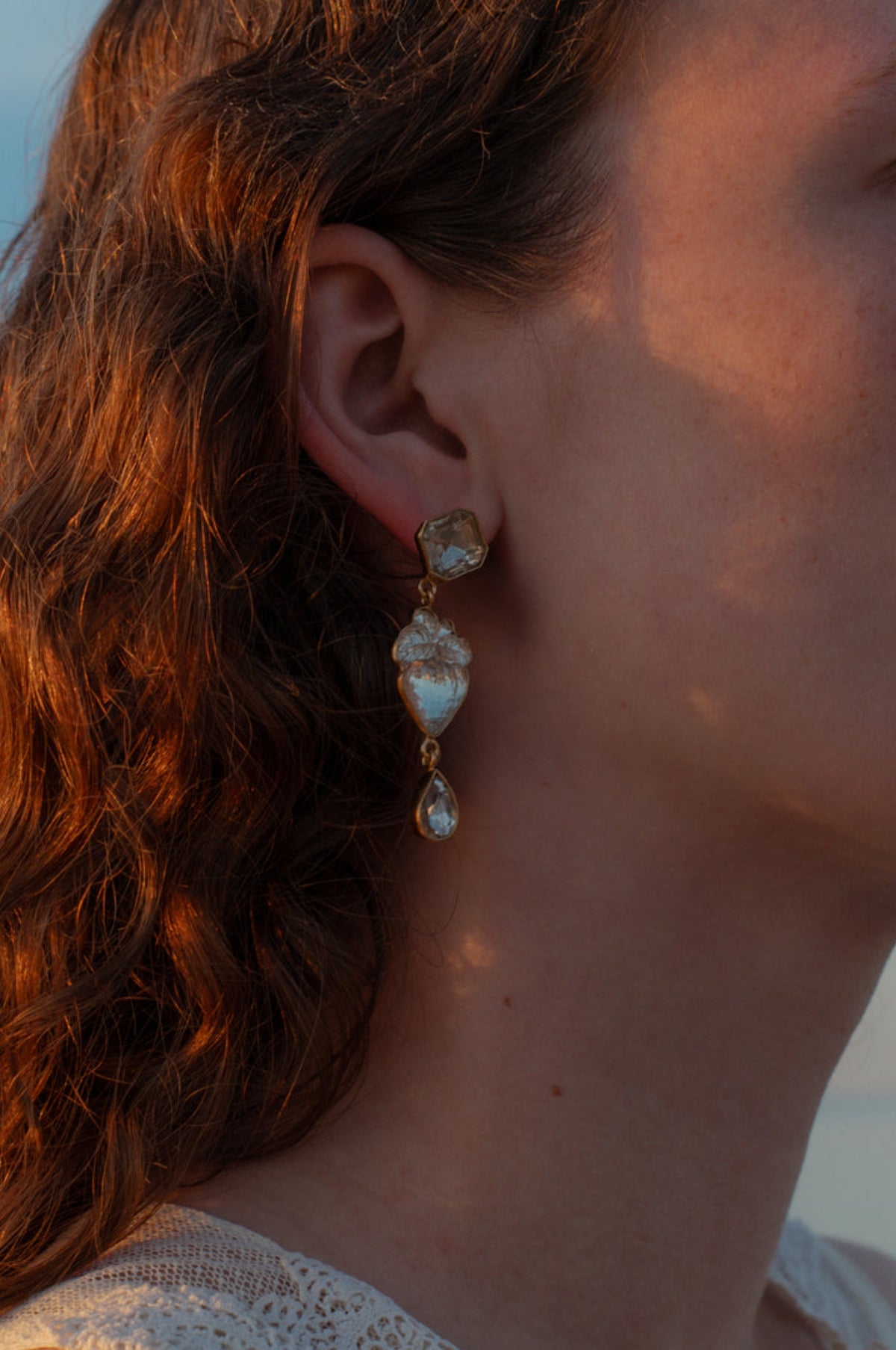 Get ready to roll out the red carpet because you'll look positively dazzling in these sparkly drop earrings from Grainne Morton. Ethically sourced from 18k gold-plated silver, vintage crystals and vintage rhinestones you'll feel just like Grace Kelly in To Catch a Thief (Cary Grant lookalike and Sunbeam Alpine Roadster not included).