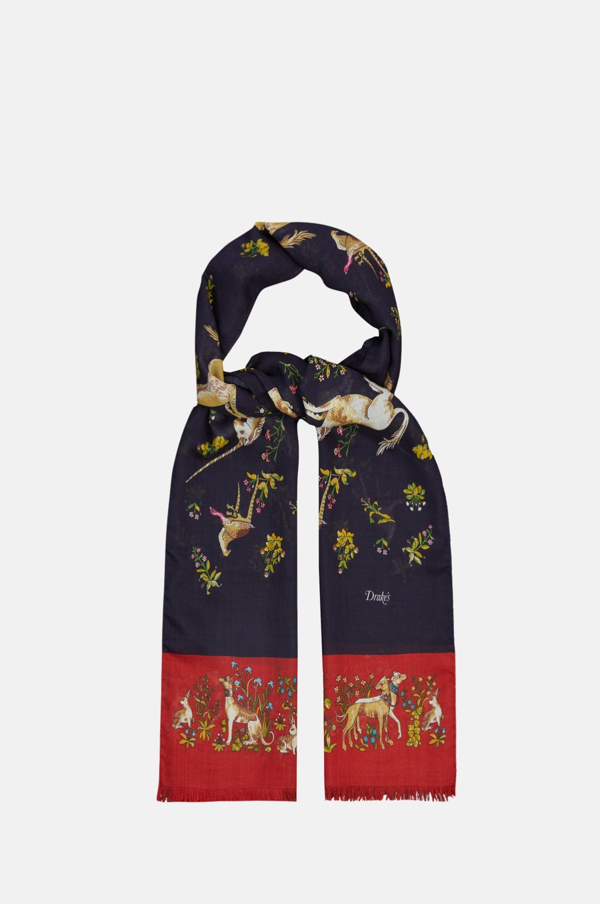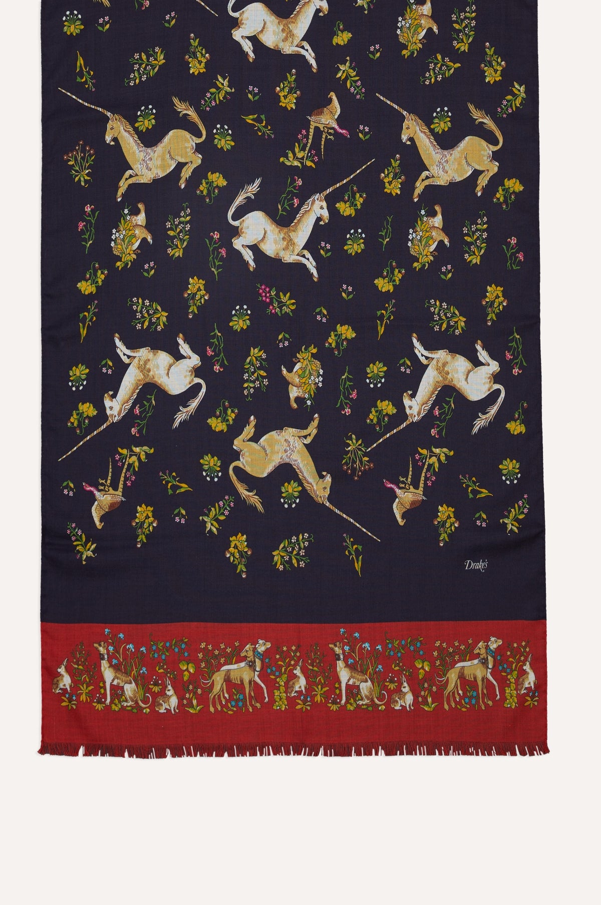 Taken from their extensive design archive, this unicorn motif has been vividly applied to a blend of pure wool and silk for a elegant and comfortable defence from a cold snap.