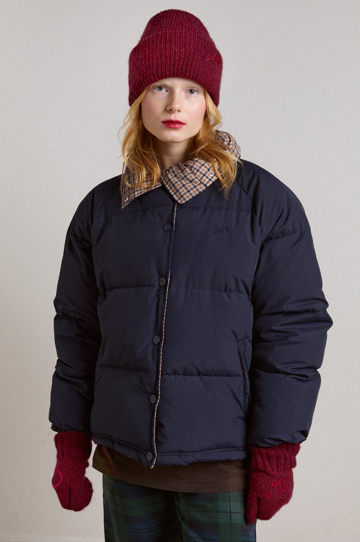 Making a perfect pair - these adorable mittens offer protection against the cold. Spun from a lightweight wool and mohair blend they are super soft. Dyed in a rich burgundy and finished with a large-scale tonal 'DM' embroidery. Pair with the matching beanie to complete the look.