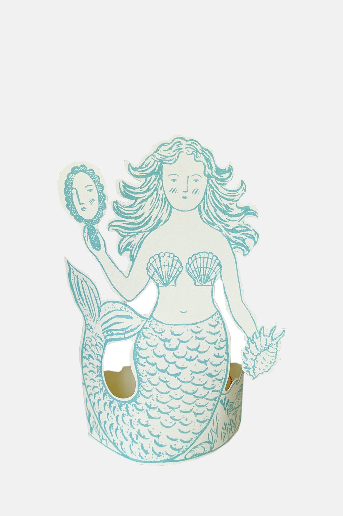 Mermaids are very much real. They actually do wear shell bras, have gorgeous hair and admire themselves in the mirror (who can blame them!). This charming card is a lovely design to give to all the mermaid obsesses and a beautiful piece to stand on display.