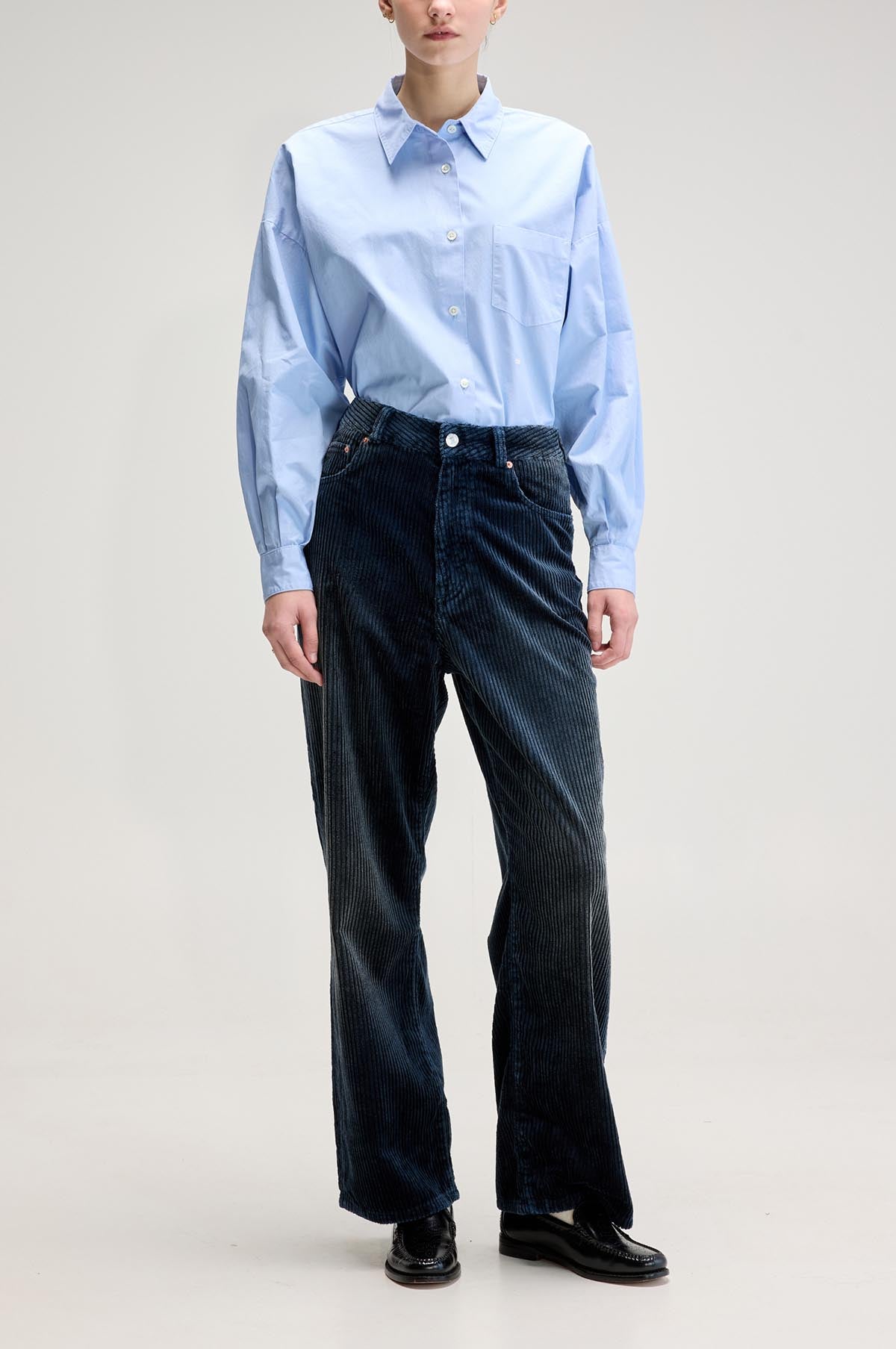 A Bellerose staple returns once more and is back with a bang in an enduring corduroy. Cut with a high rise and a wide leg, the jeans are constructed from a mid weight denim. Endlessly versatile, the Poker jean in an inky blue will be cherished for years to come.