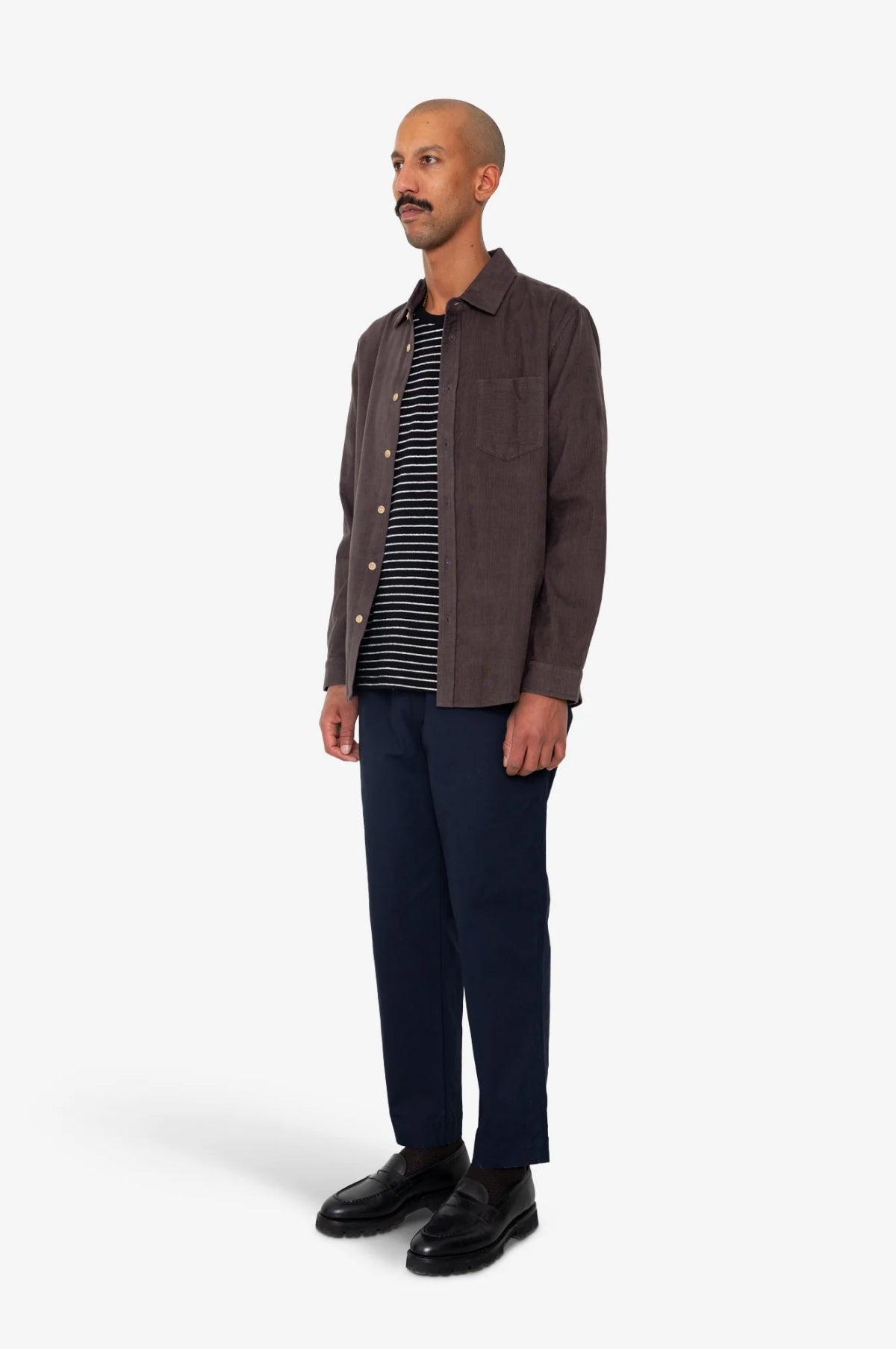 Folk offers style without drama using simple patterns with a focus on quality and textures to create approachable collections enriched by subtle details. The Direction Babycord Shirt in Black Grape is constructed of a cotton fine wale corduroy and has been garment dyed for deep colour and character.