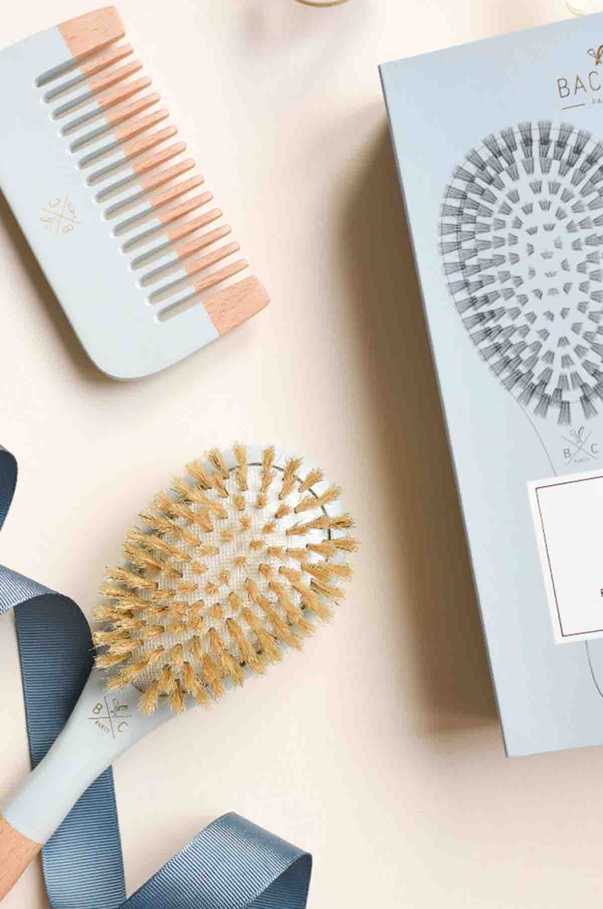 Committed to using natural, non-polluting materials Bachca focuses on making beautiful, essential accessories designed to complement your daily beauty routine. The Bacha Baby Kit includes a hairbrush and comb perfect for babies and children's hair. These handcrafted tools are made from Beechwood and is ideal for fragile hair and scalps. The natural boar bristle on the brush gently detangles hair while enhancing its natural shine. Additionally, the wooden hair comb is great for detangling hair after bath time.