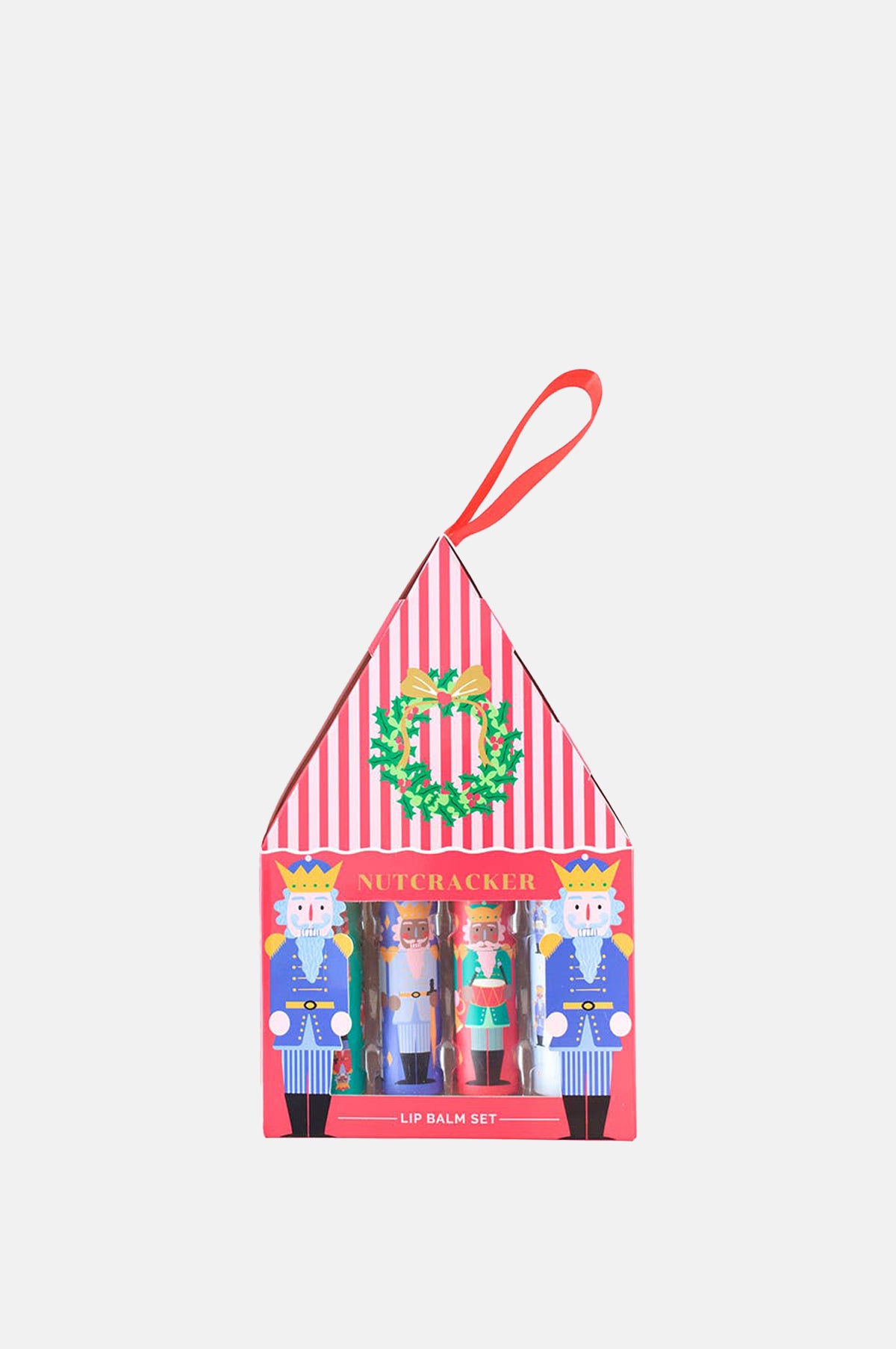 Keep your lips merry, moisturised and mistletoe-ready with this set of four lip balms. Infused with festive charm and encased in the sweetest nutcracker cardboard packaging, this set comes in four flavours: peppermint, cotton candy, strawberry and vanilla. Perfect for stuffing the stocking or as a treat whilst you deck the halls.