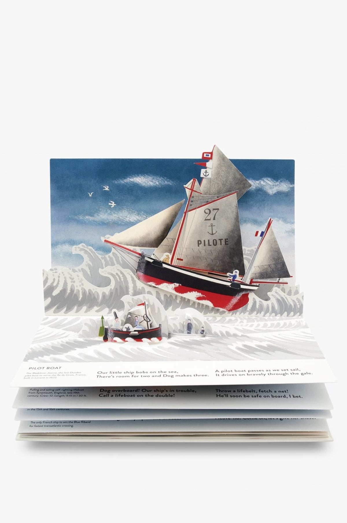 This inventive and beautifully produced pop-up book follows two sailors with their dog in tow as they journey across the sea in a tiny sailing boat, encountering all sorts of extraordinary boats as they go. Explore the detailed paper engineering of boats from ocean liners, three-masted tall ships and a lightship.