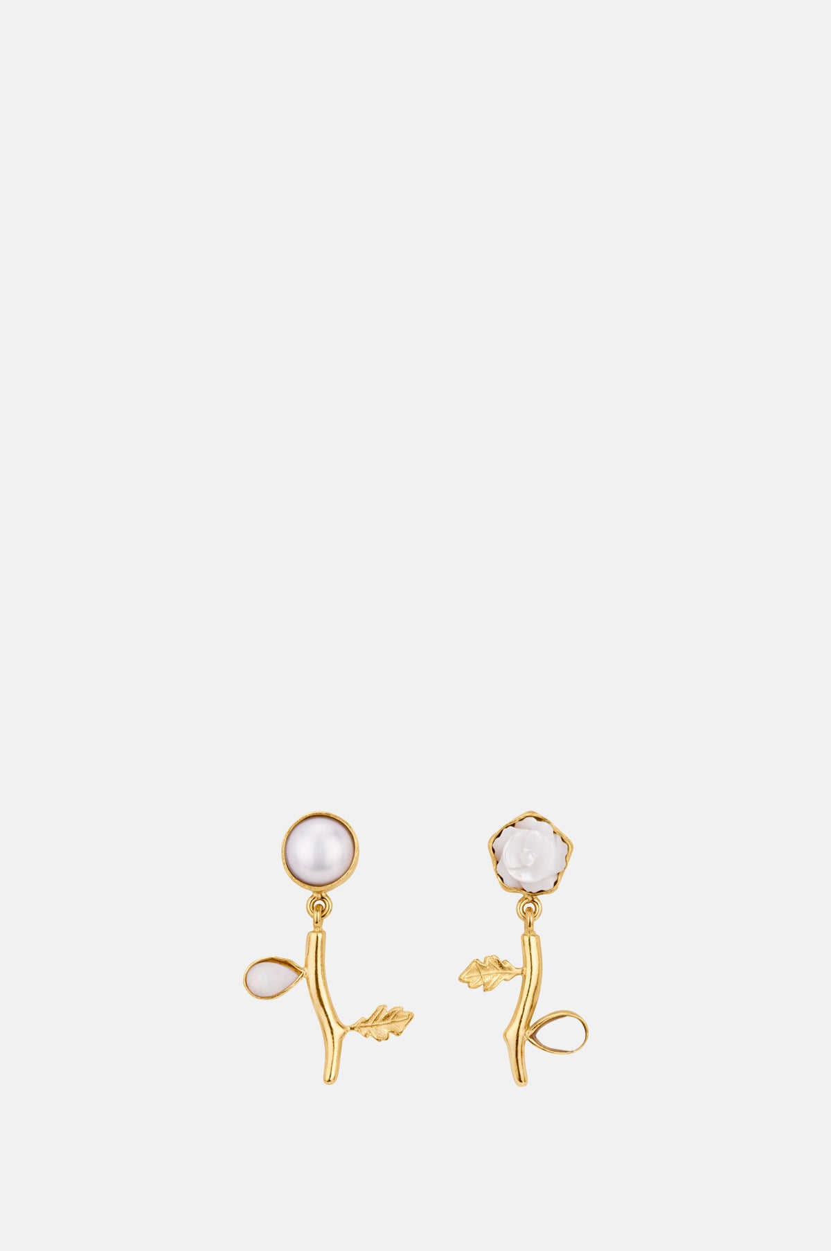 Materials: Ethically sourced 18k gold-plated silver, mother of pearl, opal and pearl. Fitting: Stud Ear Length: 30mm Width: 15mm Weight: 2.5g each Painstakingly crafted, each and every object Grainne places in to her compositions are delicately set by hand in silver… each casing measured, carefully, for a snug fit, soldered, pierced and polished, before placing in the tiny object, and rubbing the metal over to secure. As most feature elements are natural or vintage each finished item has a unique look and may vary slightly from the image shown. E-FD4