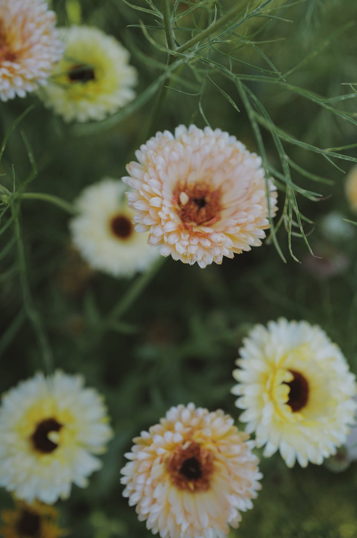 For those of you who want a bit of everything- here is a mix of the best calendula Alma Proust grow. Ranging from buff apricots to almost white, with a few vibrant ones thrown in for good measure. These are from a mix of fifth generation plants from their plot and have been creating some unique shades and centre combinations. Calendula are beautiful to use in design work, and great to give a relaxed summer feeling.