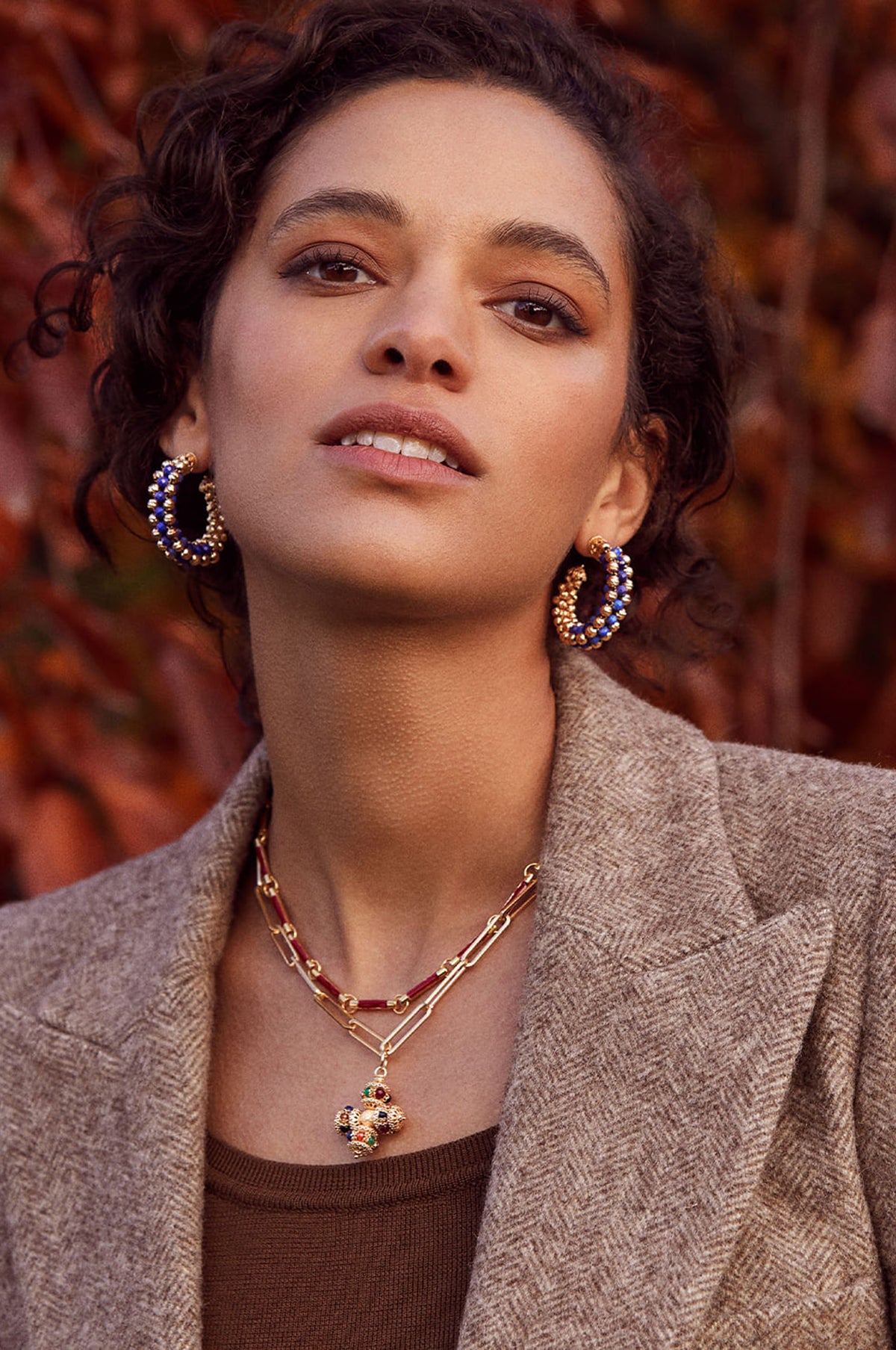 This necklace includes natural gemstones and baroque pearls which may contain internal inclusions, irregular edges, uneven surfaces and variations in the colours. No two gems are the same, adding to the beauty and uniqueness of each individual gem.
