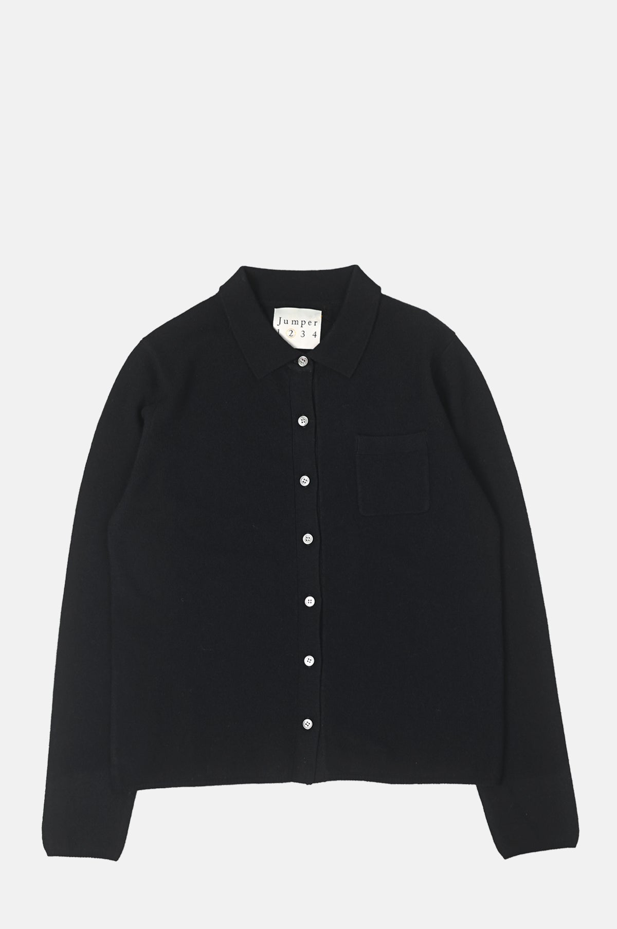 One of the virtues of a great knit is its ability to make you feel utterly fabulous with very little effort. Lightweight and woven from a plush merino wool, this black long-sleeved polo shirt from Jumper 1234 will go with anything. With its flattering cut, button up front, small chest pocket and classic design this is a very wearable piece for all seasons.