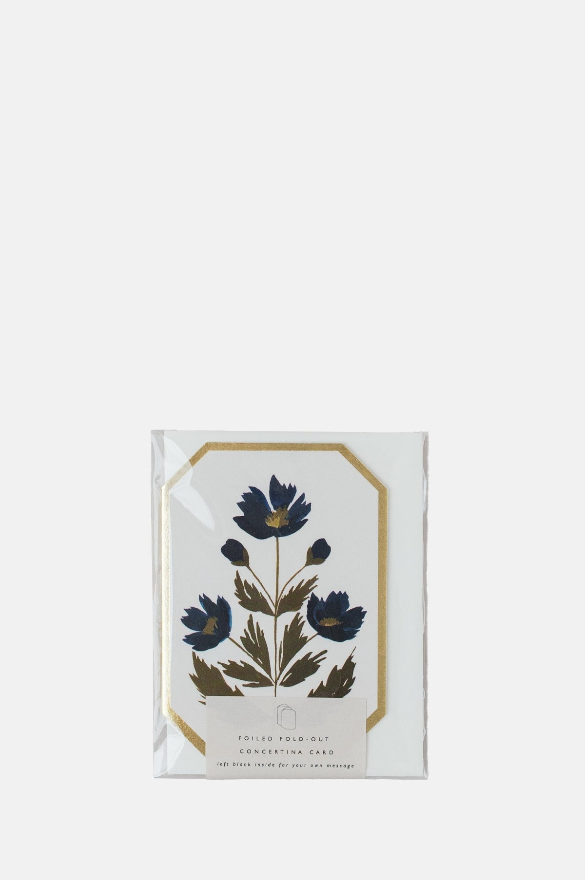 This mini card is the perfect size for pairing with a little gift or flowers. Die cut and delicately foiled with beautiful blue botanical illustrations. Mantel worthy concertina card that can be displayed all year round!