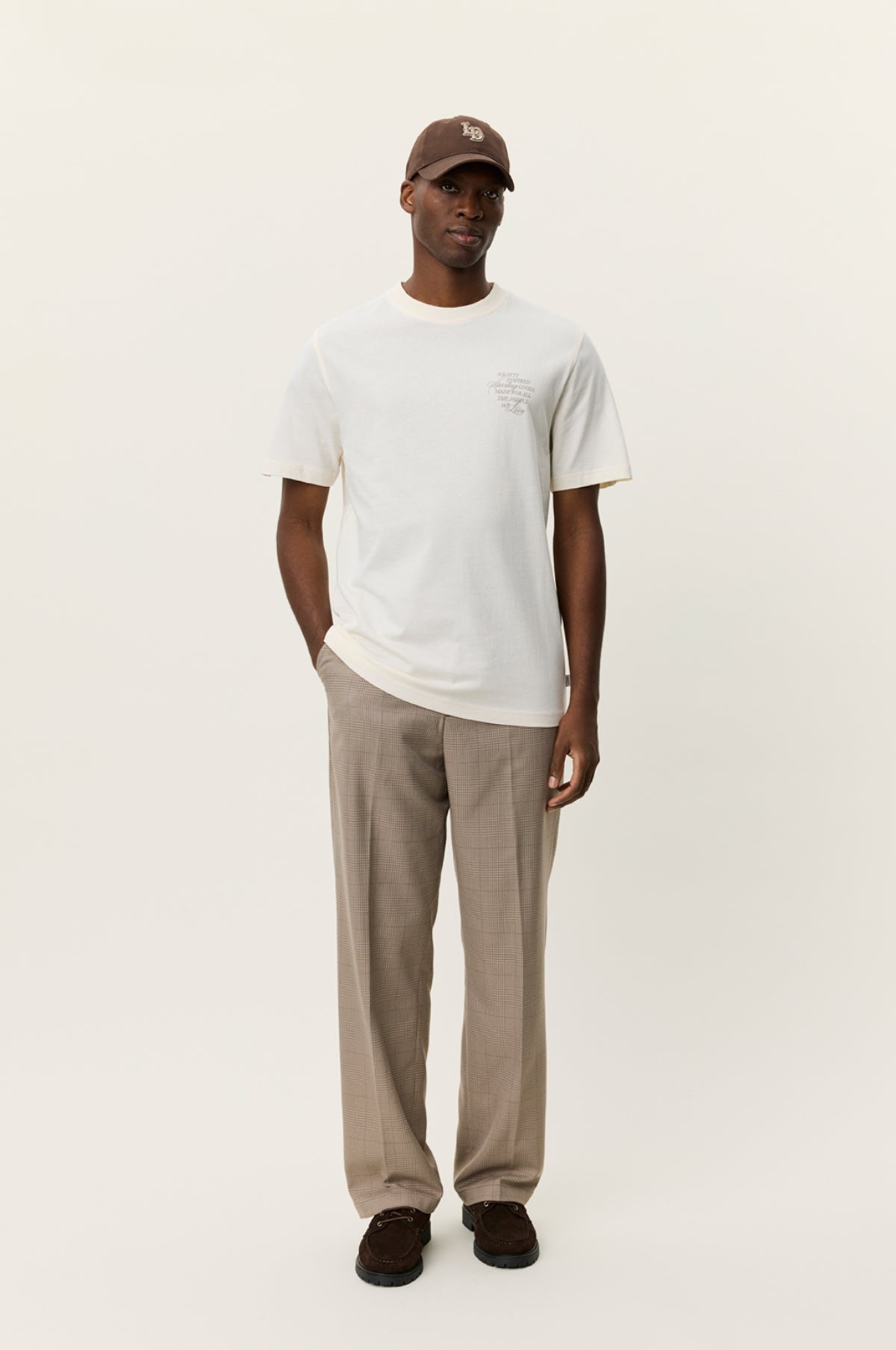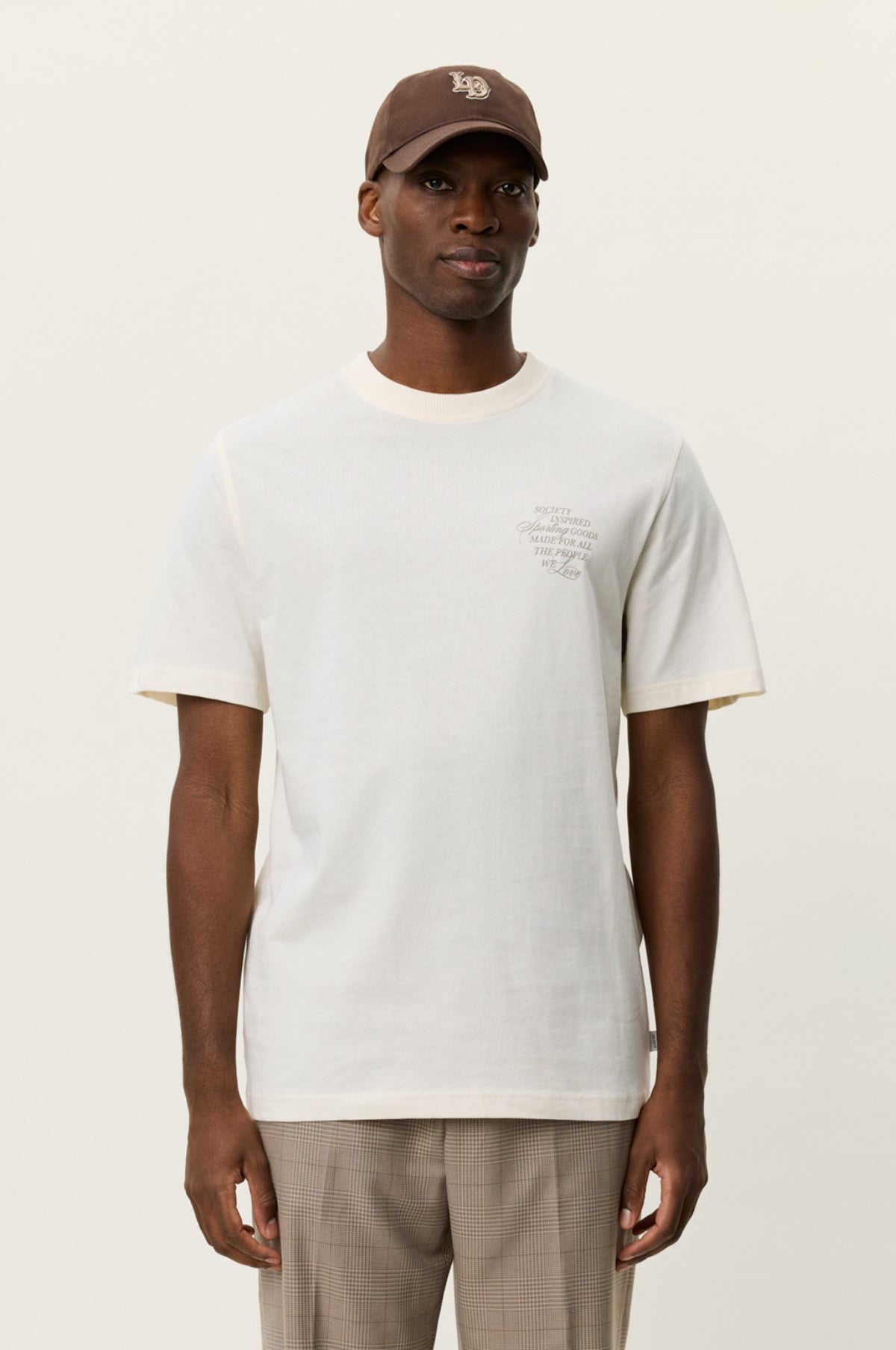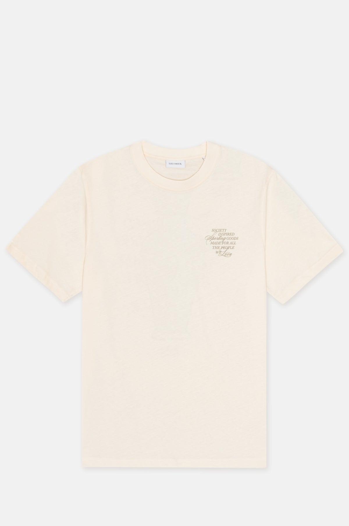 Les Deux are a Copenhagen based brand that bridge the gap between streetwear and classic menswear with a minimal aesthetic and reasonable price point. The Ben Faience T-Shirt in Eggnog white is a classic short sleeve tee with a large back print and smaller chest print. A lightweight layer crafted from 100% organic cotton.