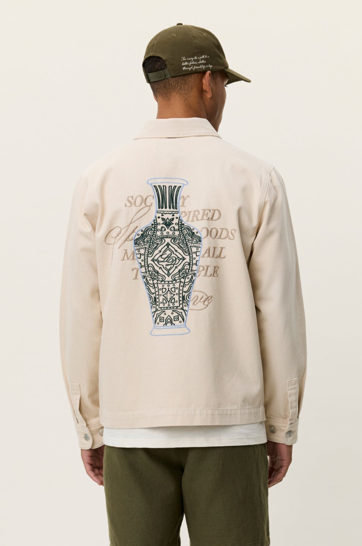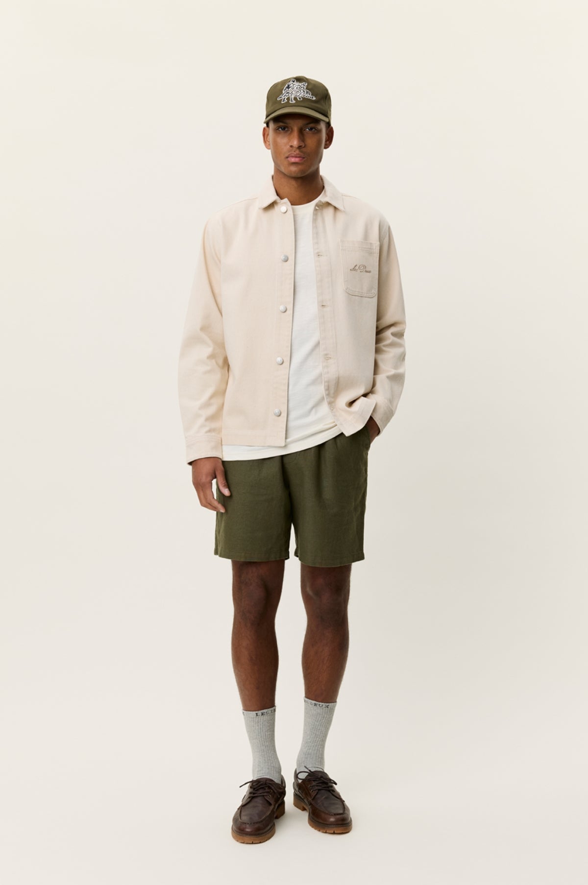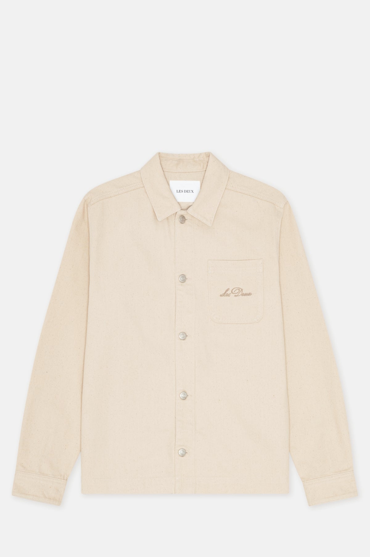 Les Deux are a Copenhagen based brand that bridges the gap between streetwear and classic menswear with a minimal aesthetic and reasonable price point. The Layton Faience Twill Overshirt in Ivory from Les Deux is a classic overshirt finished in a soft canvas with a natural undyed colour, 2 chest pockets and large back embroidery design.