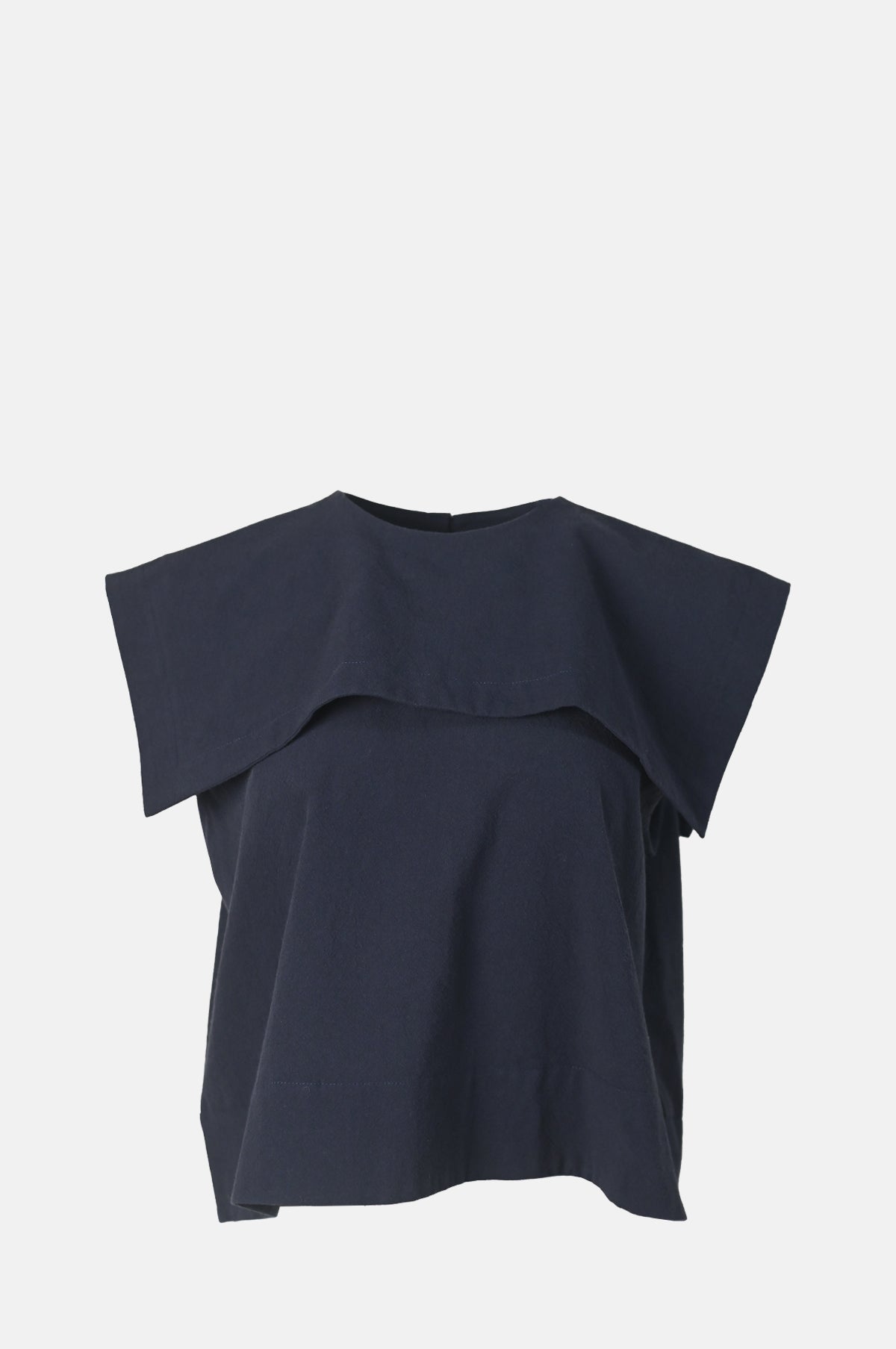 Defined by its statement sailor-style collar, the Puritan Vest nods to nautical elegance with its clean lines and minimalist design. Crafted from a breathable cotton in a dark navy, this sleeveless top has a cropped, boxy silhouette.